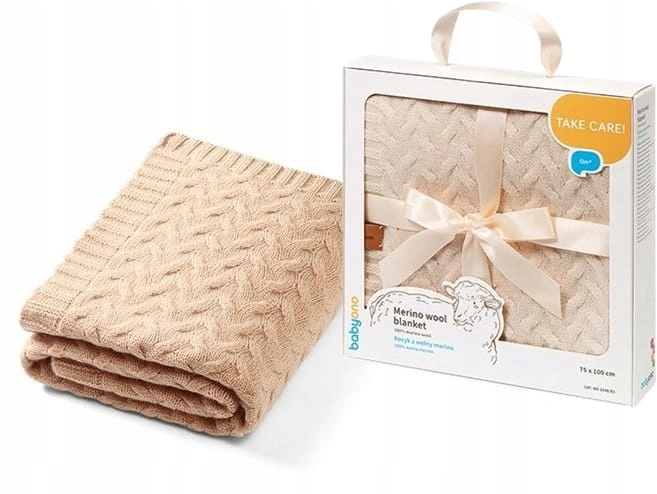 Babyono Kocyk 75 x 100cm MERINO WOOL otulacz z wełny 1648/02 beżowy