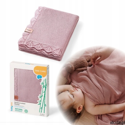 Babyono Kocyk dzianinowy 75x100 bambusowy dla niemowląt 1674/01 różowy