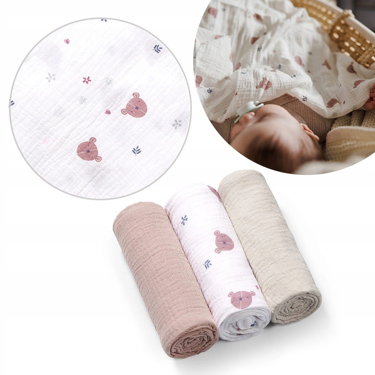 Babyono PIELUSZKI PIELUSZKA MUŚLINOWA MARSZCZONA SUPER MIĘKKIE 3 SZT 828/03