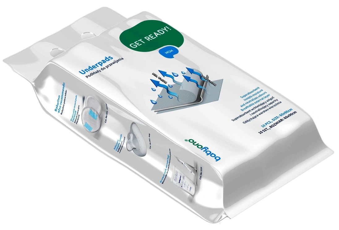 Wewnątrz każdego podkładu znajduje się wydajny superabsorbent. Podkłady do przewijania 60x90 Babyono 509 10 szt szybko wchłaniają wilgoć oraz neutralizują nieprzyjemne zapachy.