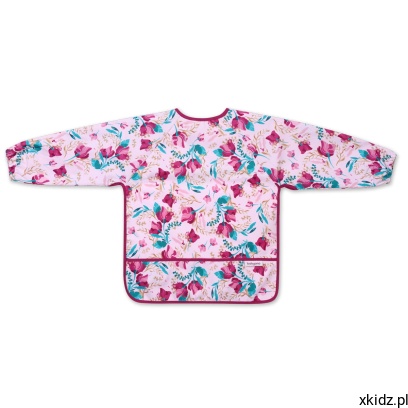 Babyono Śliniak fartuszek z długim rękawem i kieszonką FLORAL 1477/01