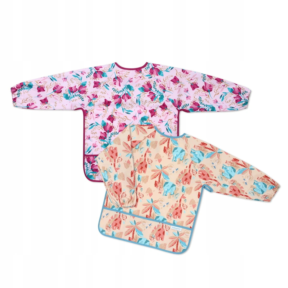 Dzięki temu wodoodporny fartuszek do nauki jedzenia dla dziecka Babyono z długimi rękawami i kieszonką zapewnia maksymalną ochronę podczas posiłków.