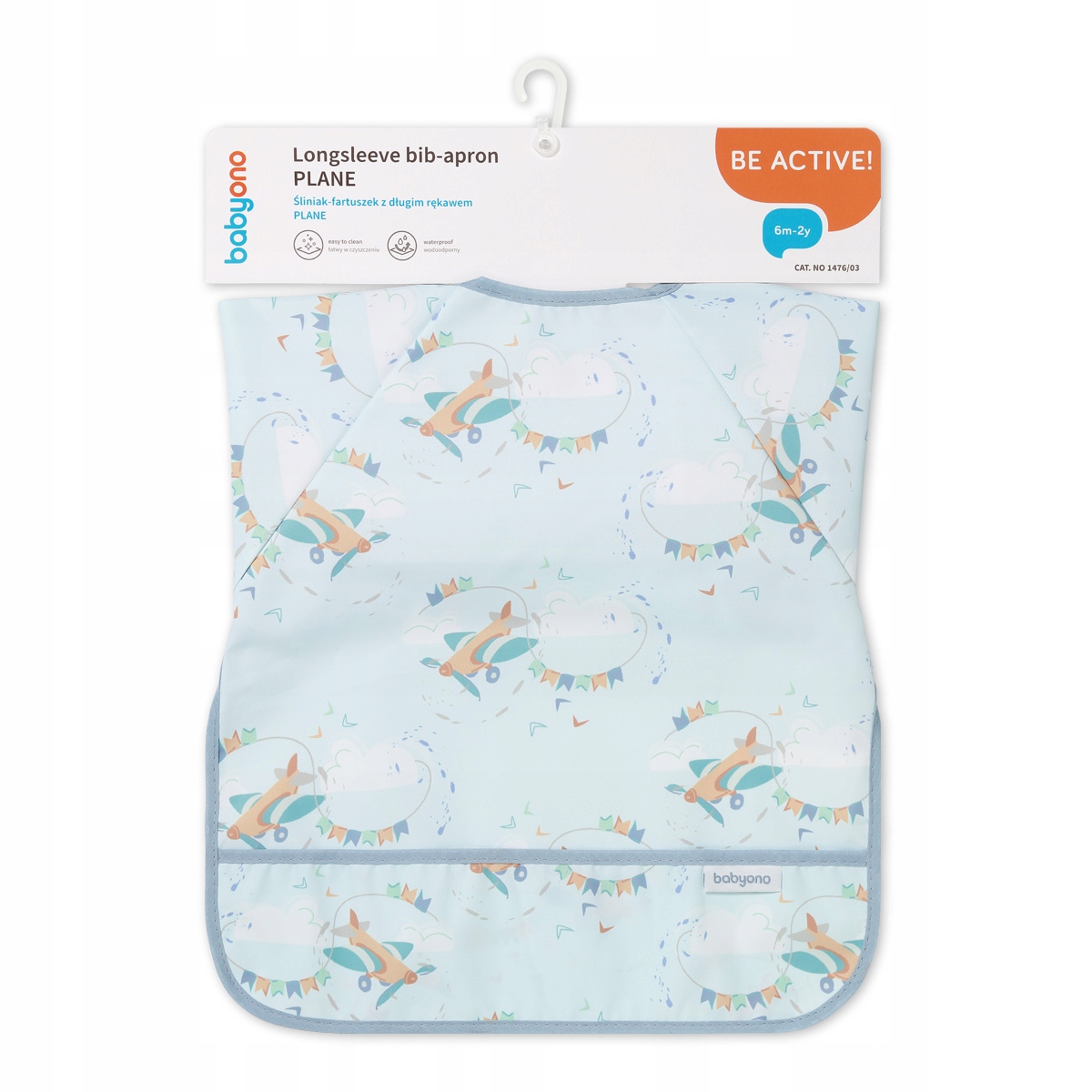 Babyono Śliniak fartuszek z długim rękawem i kieszonką PLANE 1476/03