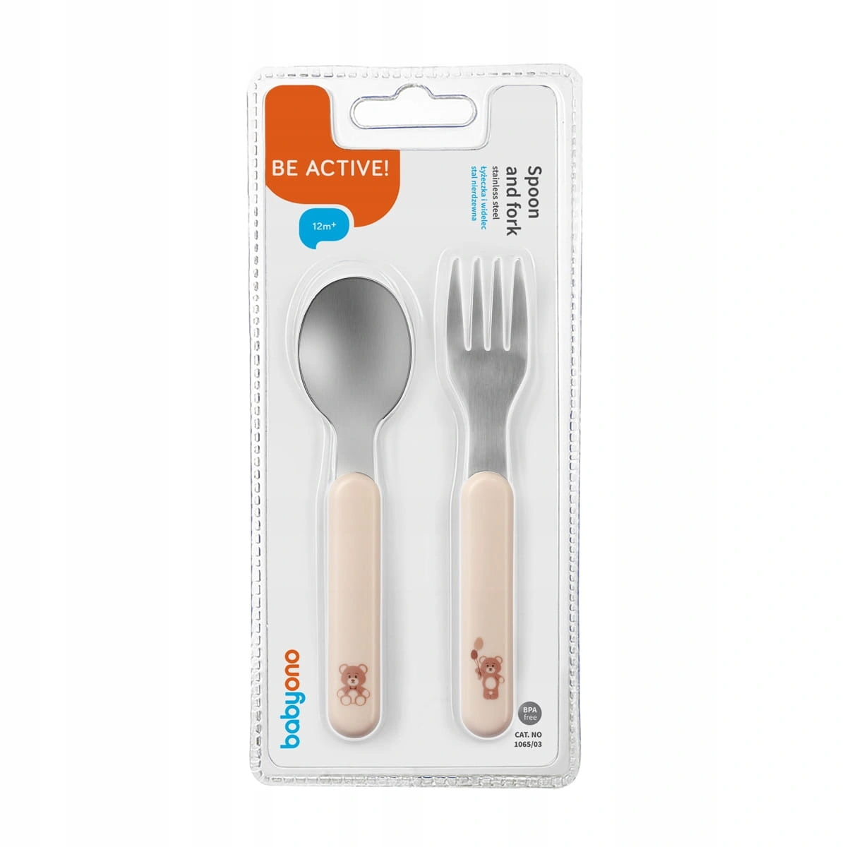 Babyono Sztućce dla dzieci łyżeczka + widelec stal nierdzewna 1065/03 Beige