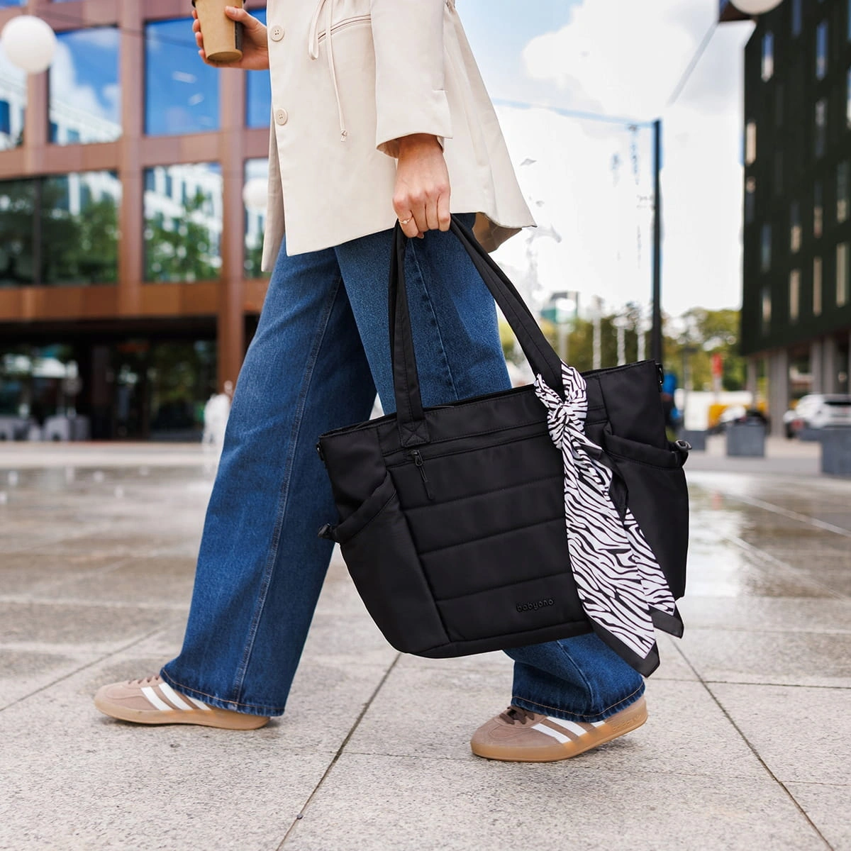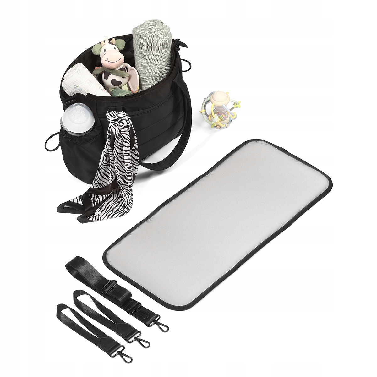 Poznaj naszą torbę do wózka CAMI – stworzoną z myślą o aktywnych mamach, ceniących wygodę, funkcjonalność i styl. Dostępna w eleganckim czarnym kolorze, który pasuje do wszystkiego. Doskonałe odzwierciedlenie sportowej elegancji. W zestawie z piękną apaszką we wzór zebry, którą możesz wiązać na różne sposoby. Przyczepisz torbę do wózka i wykorzystasz jak codzienną torebkę. W dużej torbie zmieścisz wszystko, czego potrzebujesz na wyjście z dzieckiem.