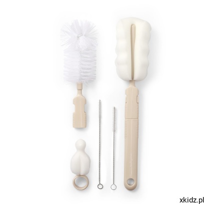 ✅ Kompletny zestaw 5 elementów: szczotka, gąbka, gąbeczka do smoczków, 2 mini szczoteczki