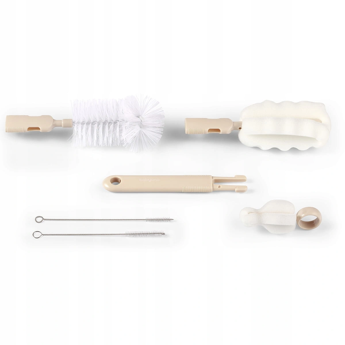 Babyono zestaw szczotek do mycia butelek i smoczków słomek 735/04 beige
