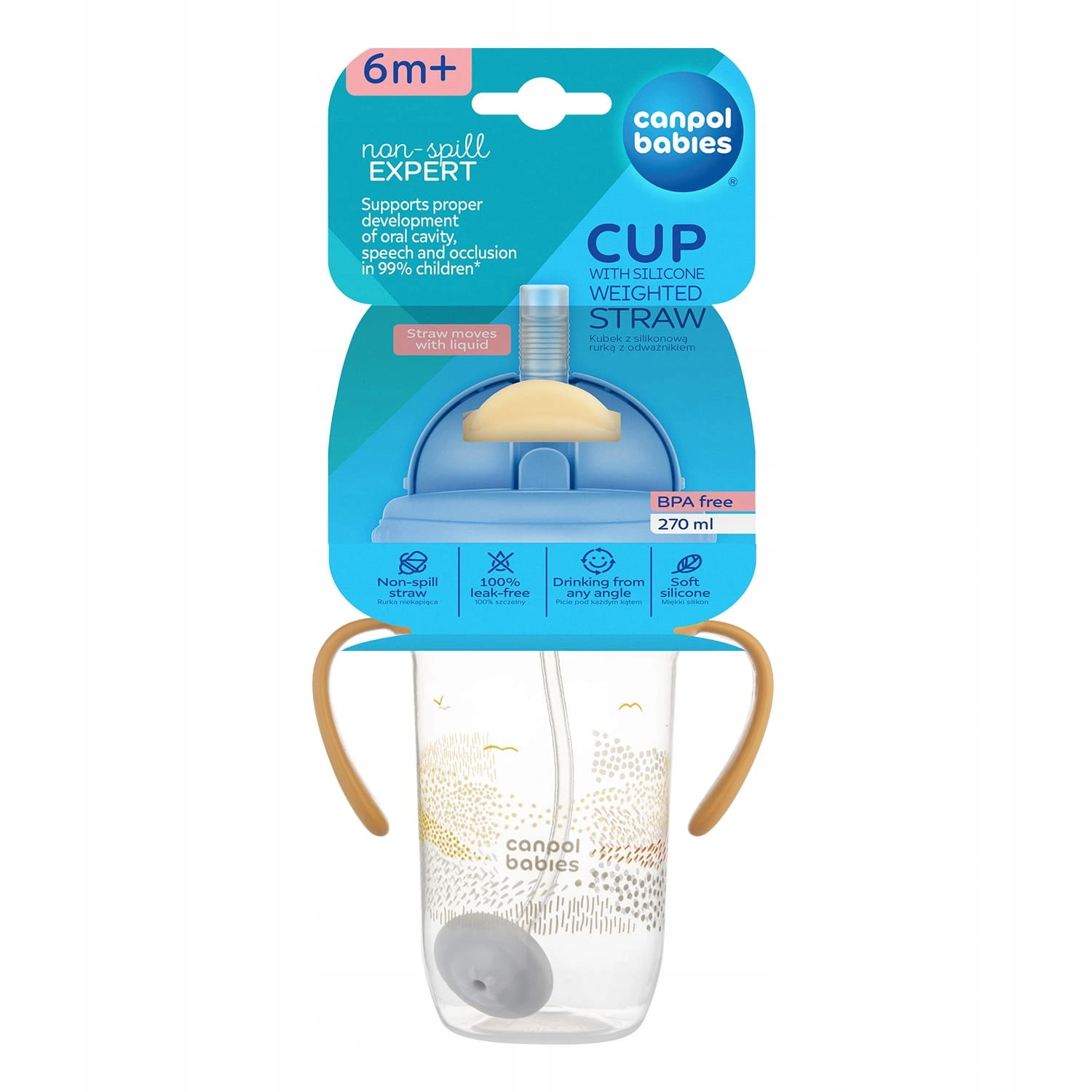 Kubek niekapek Canpol babies 270 ml wspiera prawidłowy rozwój jamy ustnej, mowy i zgryzu u 99% dzieci.* Dzięki odważnikowi w rurce i miękkiej silikonowej rurce, maluch może swobodnie pić, ucząc się prawidłowego ruchu języka i pracy mięśni warg.