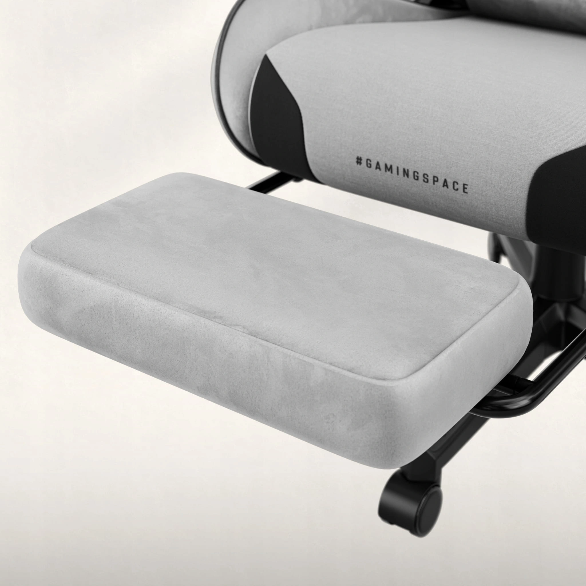 Styl gamingowy w klasie premium łączy wytrzymałe materiały, oddychającą tkaninę i przyjemny w dotyku welur z funkcjami, które poprawiają ergonomię i redukują napięcie mięśni karku.
