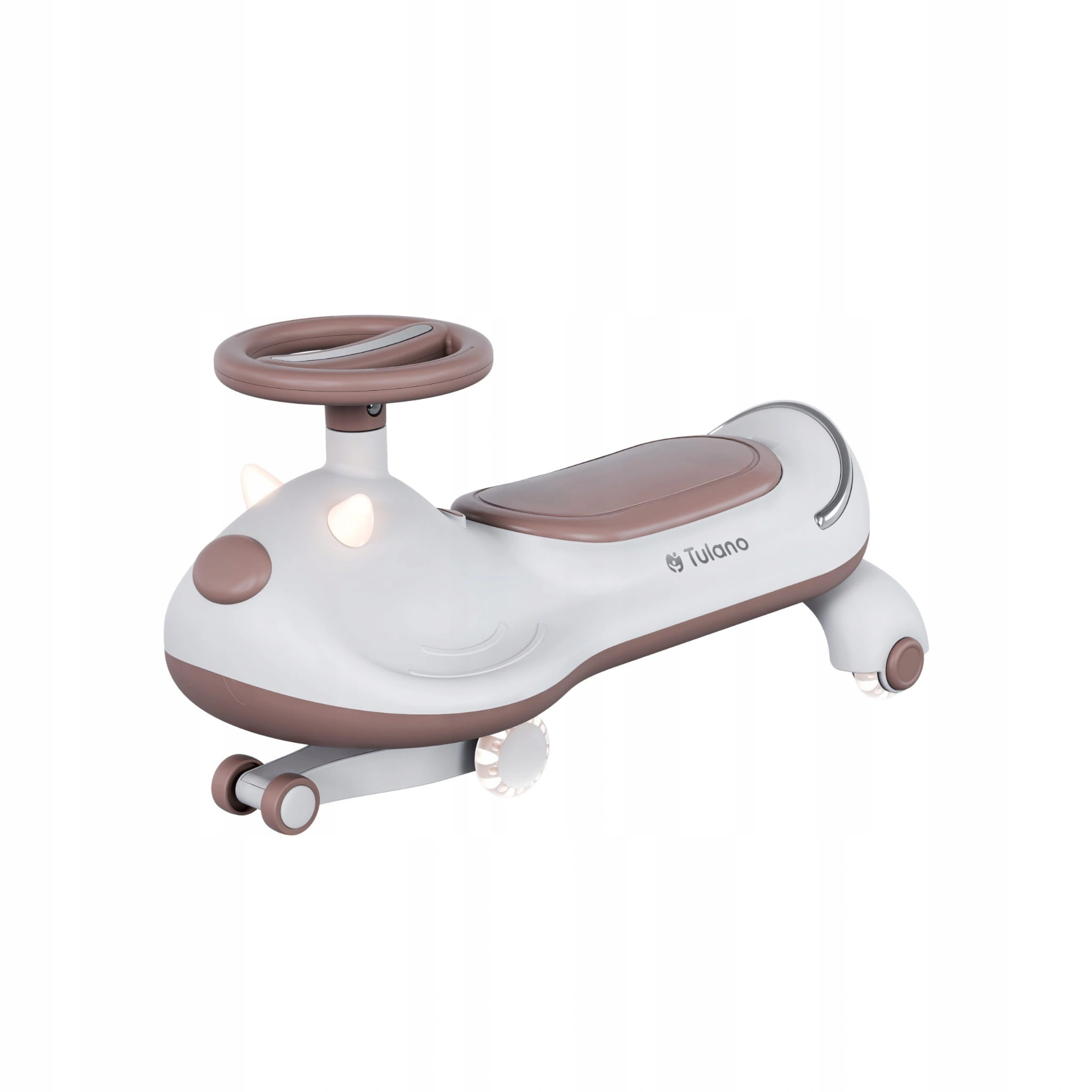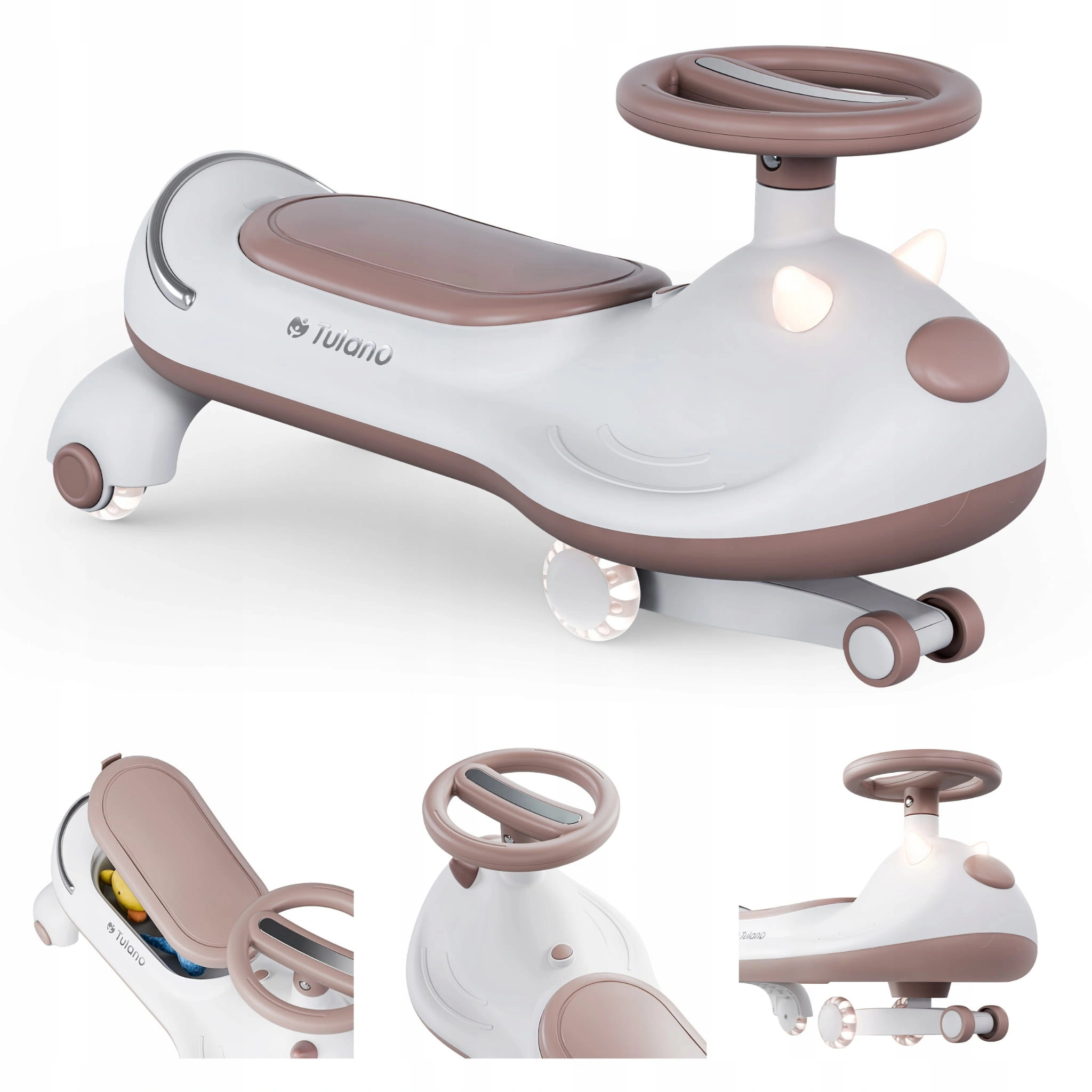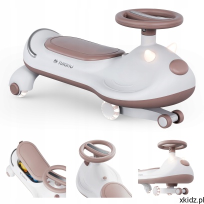 Nowoczesny wygląd sprawia, że ten jeździk grawitacyjny dla dzieci z LED i panelem muzycznym wyróżnia się na tle innych pojazdów dziecięcych.