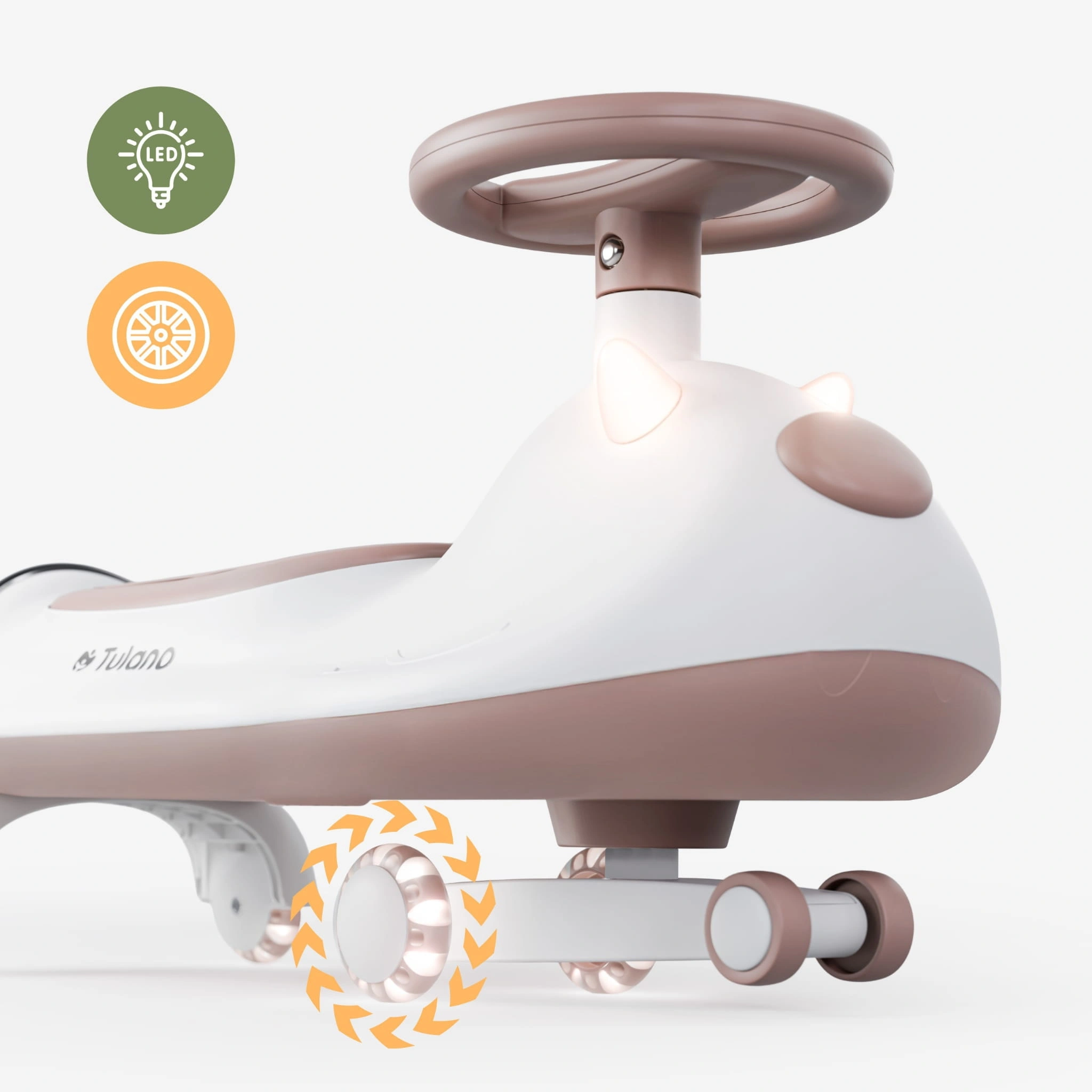 Jeździk grawitacyjny dla dzieci z kierownicą 360° i świecącymi kołami LED – jazda bez pedałowania