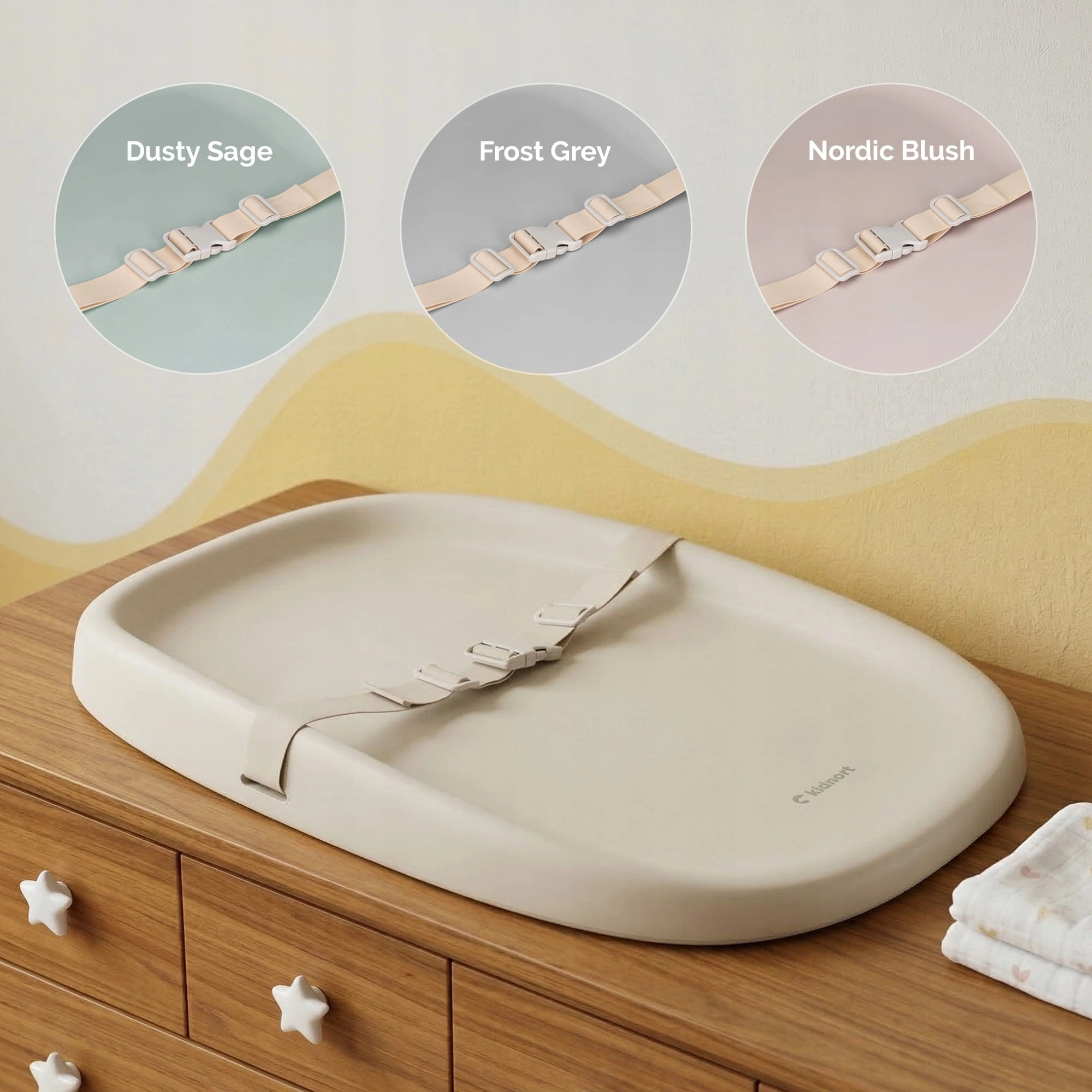 przewijak dla niemowlaka z pasem bezpieczeństwa i podwyższonymi krawędziami Laer zapewnia pełną kontrolę podczas przewijania.