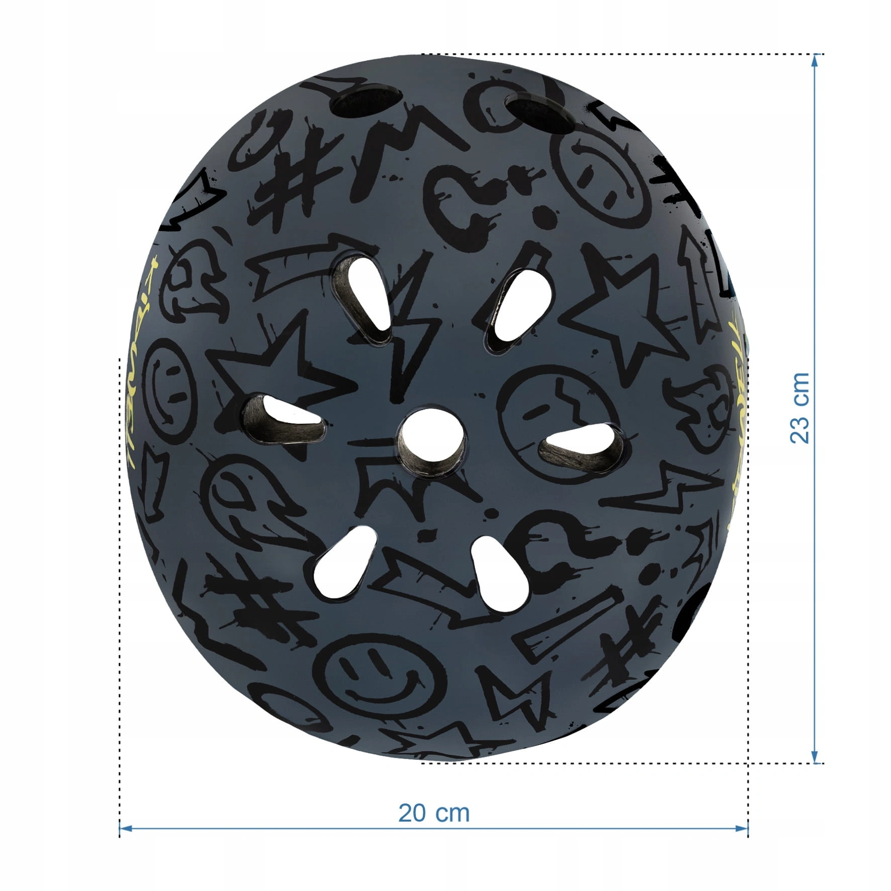 Nowoczesny design to ogromna zaleta. kask ochronny dla dzieci na rower hulajnogę rolki 48-52 cm w wersji graffiti wyróżnia się dynamicznym wyglądem.
