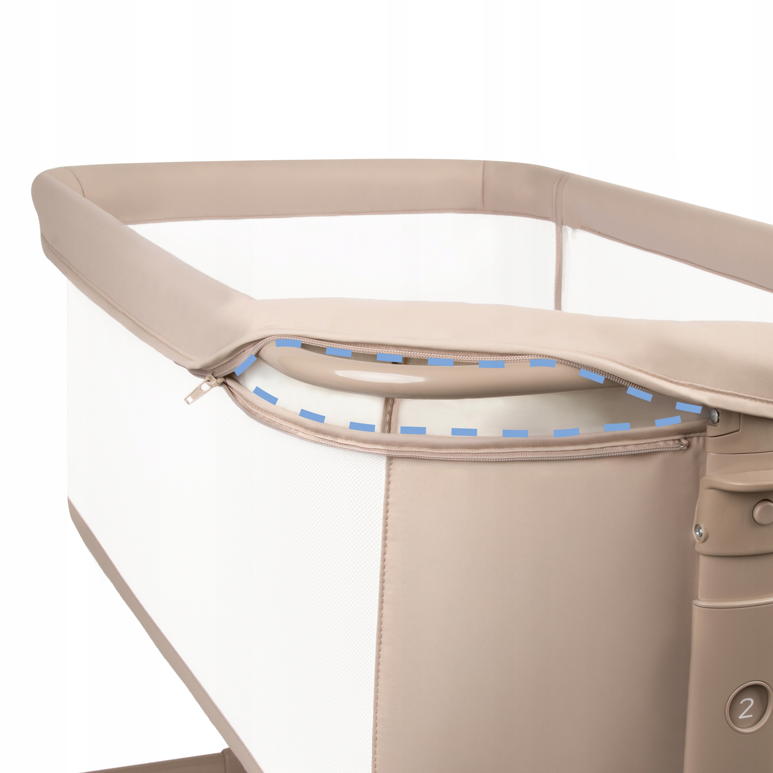 - Pasy mocujące - stabilizują łóżeczko i zabezpieczają przed niekontrolowanym odsunięciem się od łóżka rodziców w trybie dostawnym.