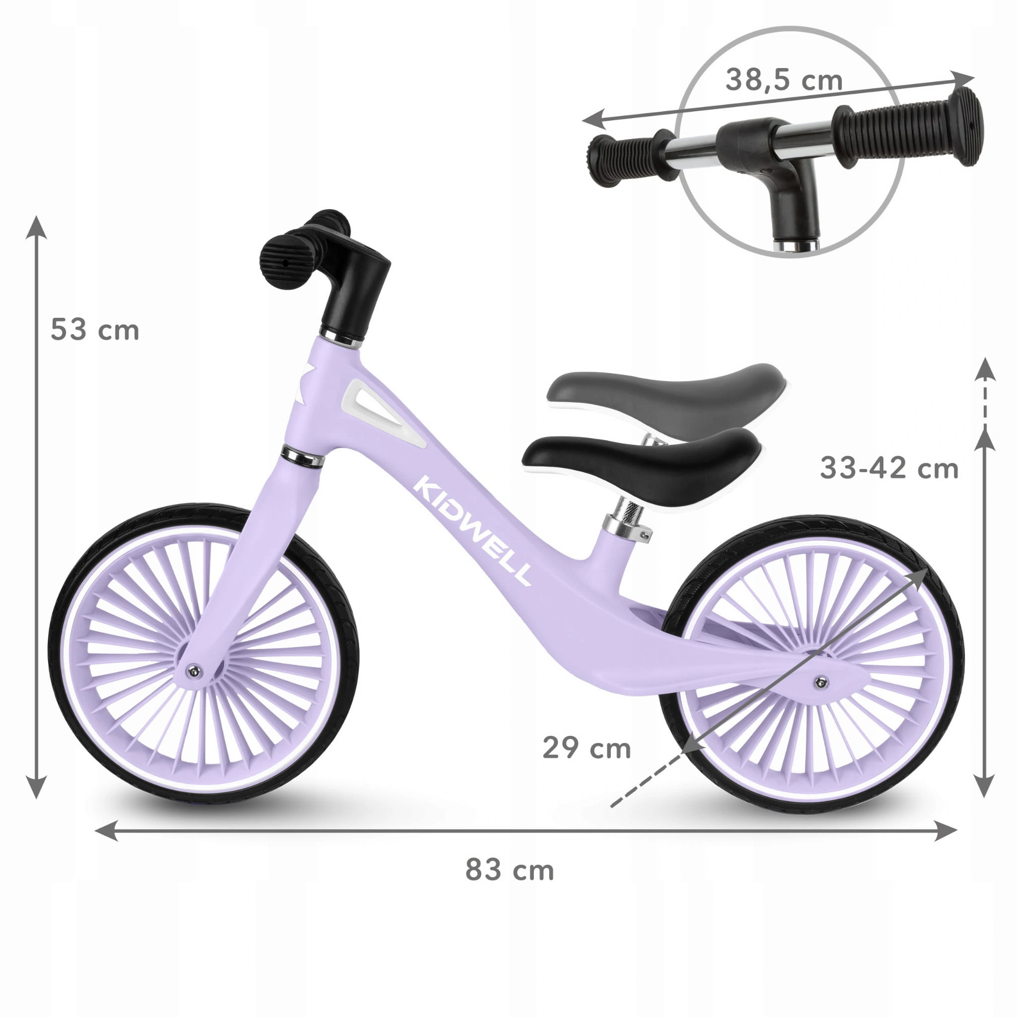 Dzięki temu rowerek biegowy Kidwell NIX bezpieczny dla dziecka do nauki jazdy daje rodzicom spokój, a dzieciom swobodę.