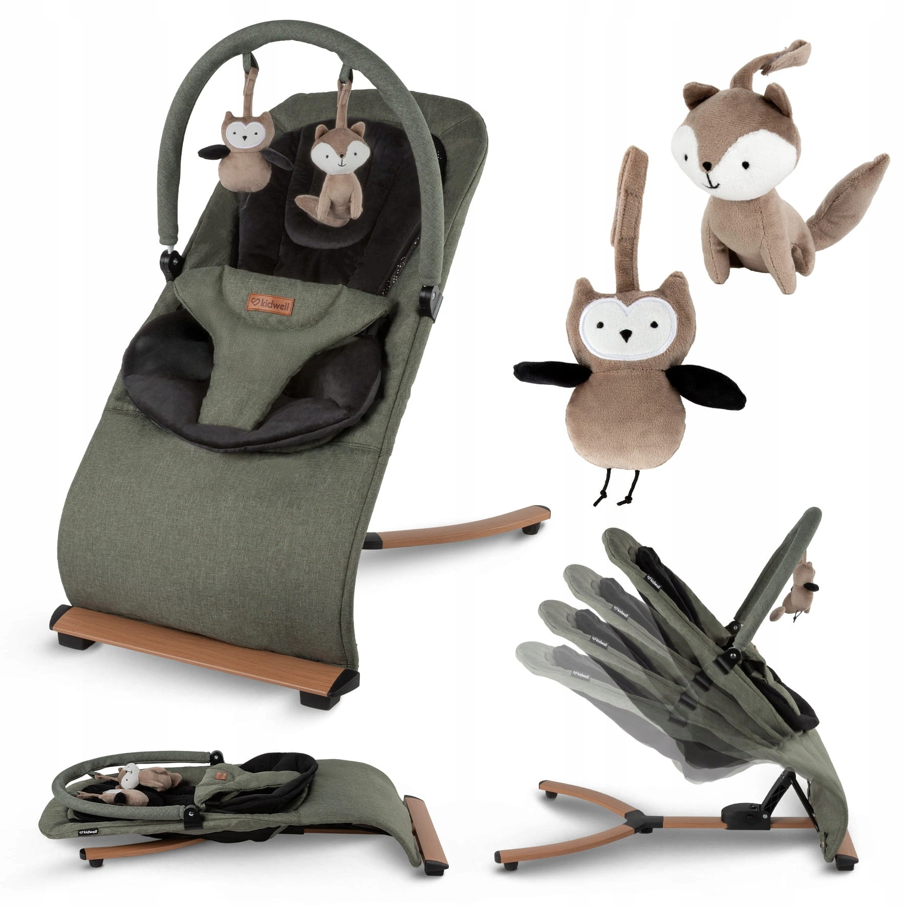 Kidwell RUBI leżaczek bujaczek składany zabawki ruchomy pałąk Green/Black