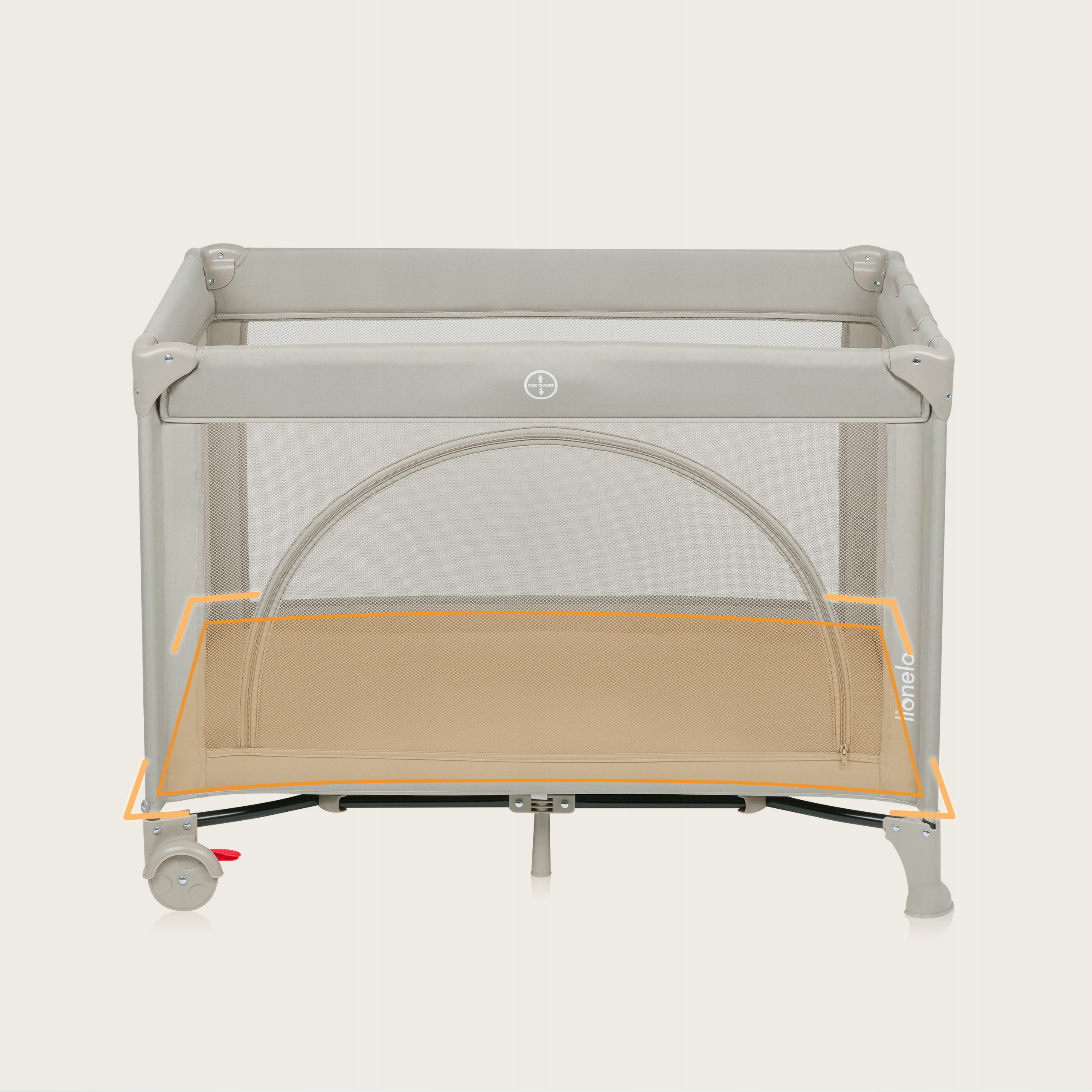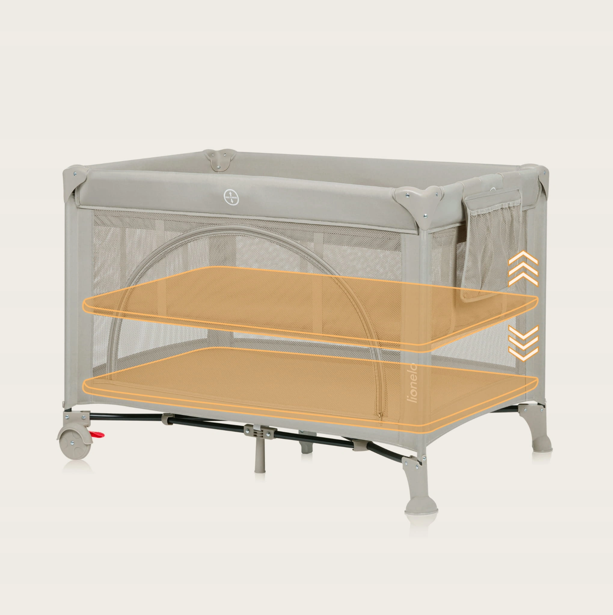 Kompaktowe łóżeczko turystyczne z funkcją kojca Lionelo Laura posiada dwa poziomy ułożenia materaca.