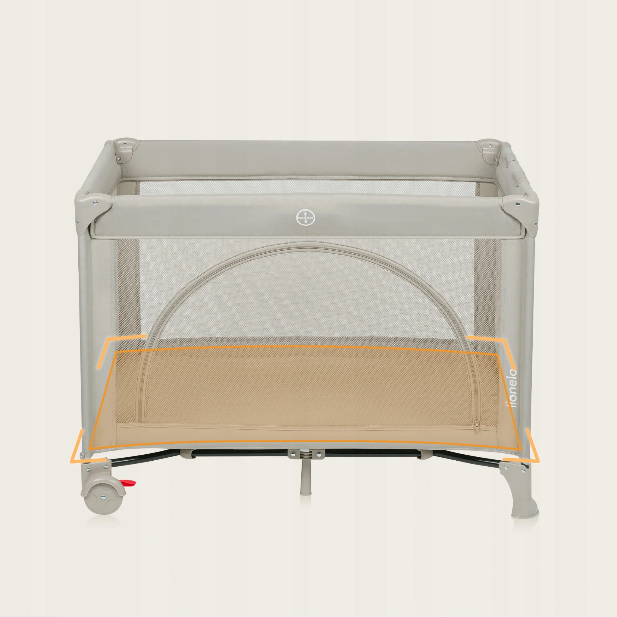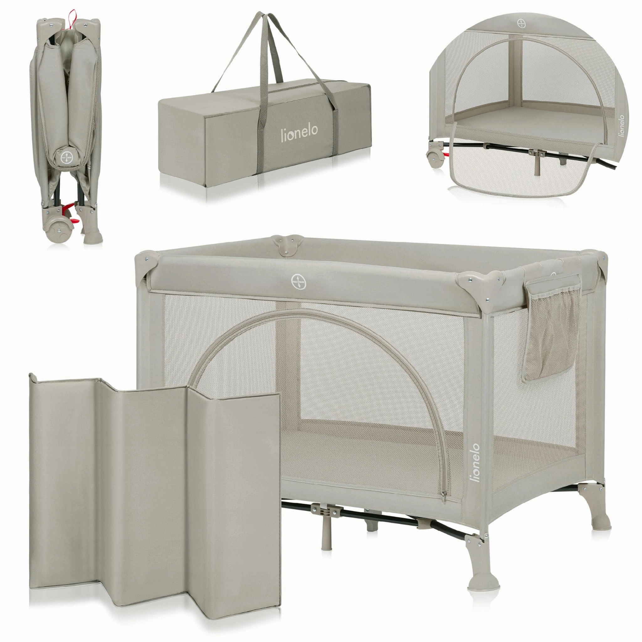 LIONELO Łóżeczko turystyczne DWUPOZIOMOWE kojec + torba LAURA Beige