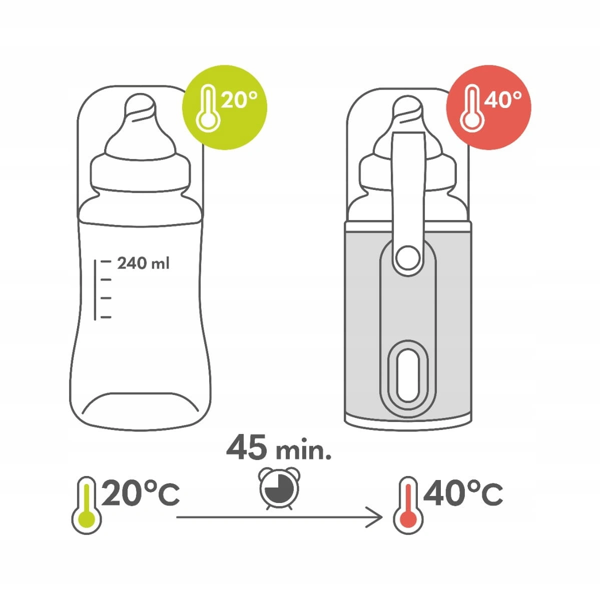 ✔️ – gdy pokarm osiągnie temperaturę 40-43°C lampka zmieni kolor z czerwonego na zielony.