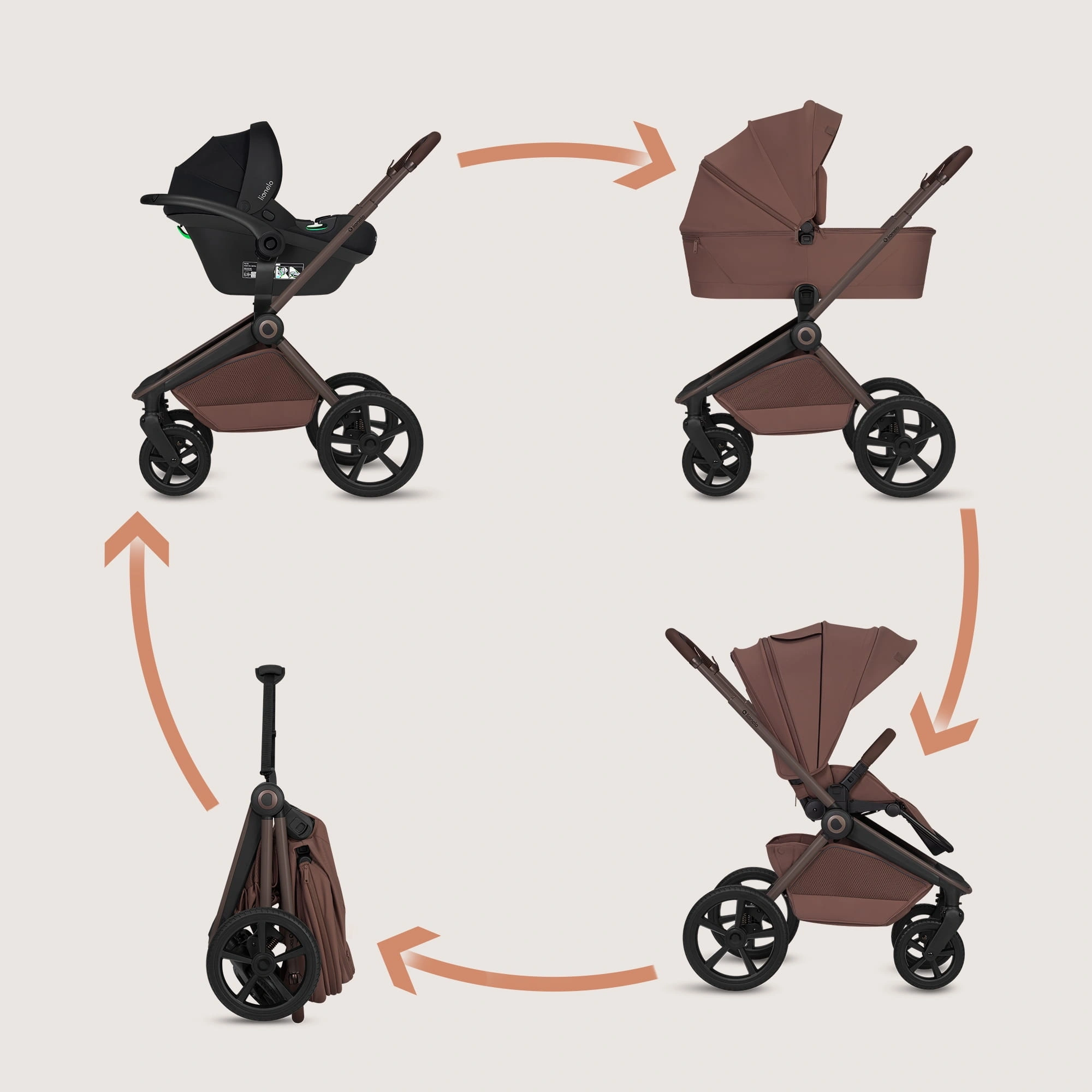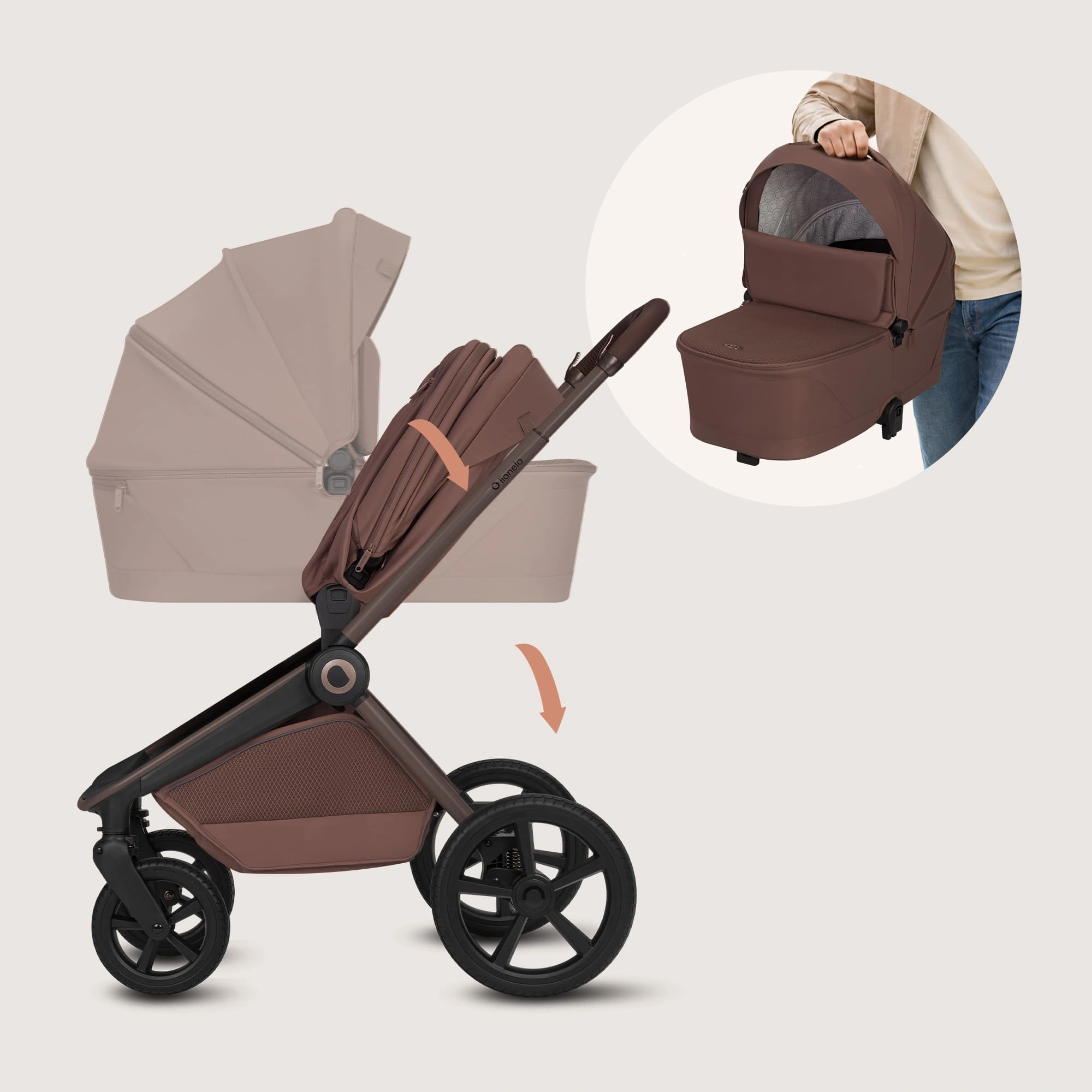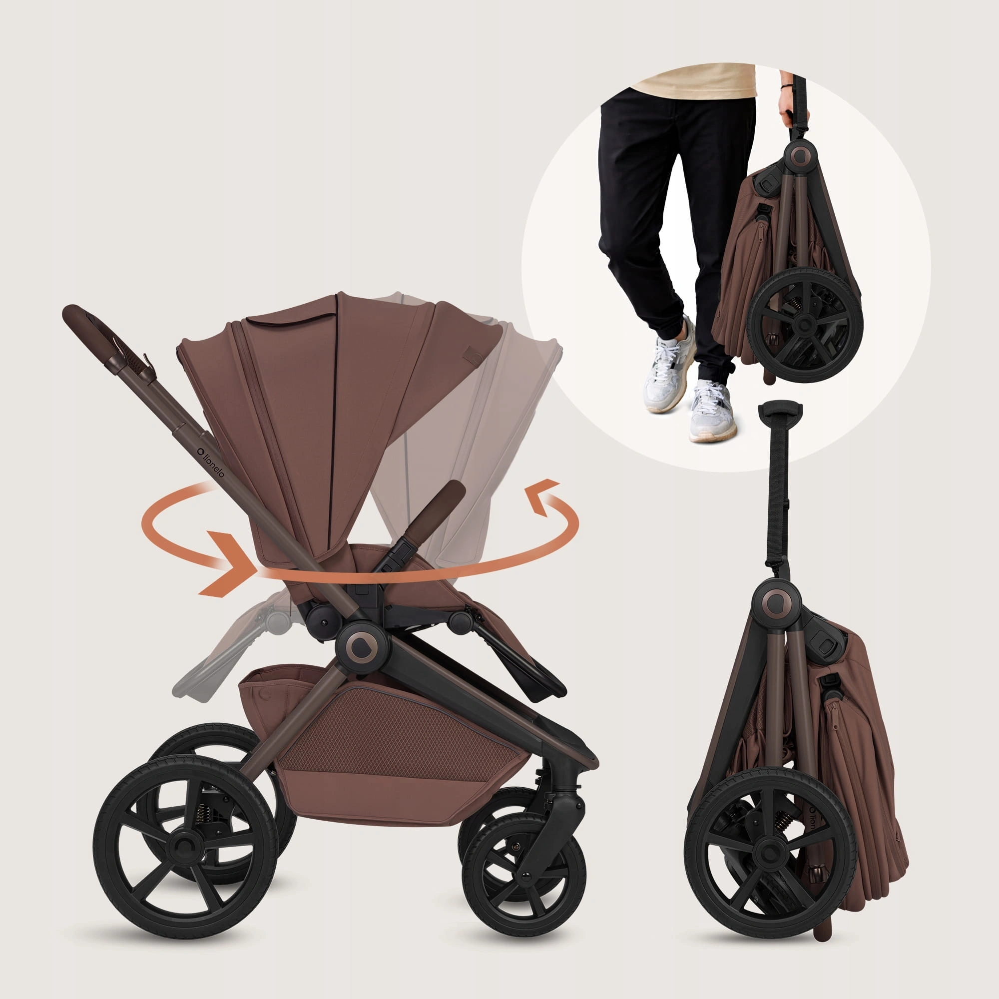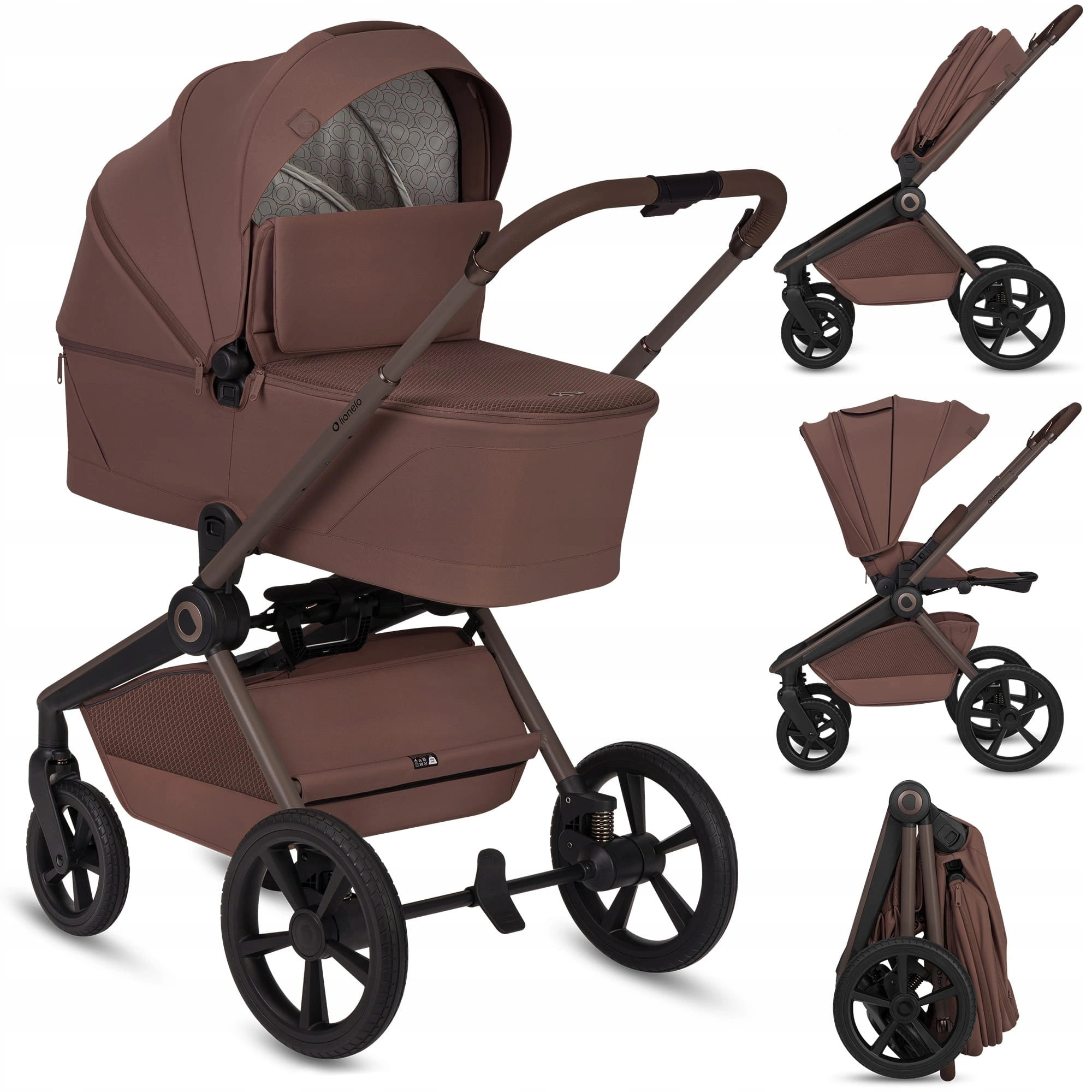 Lionelo Wózek 3w1 Freya Chocolate spacerówka przód/tył+gondola fotelik ADAC