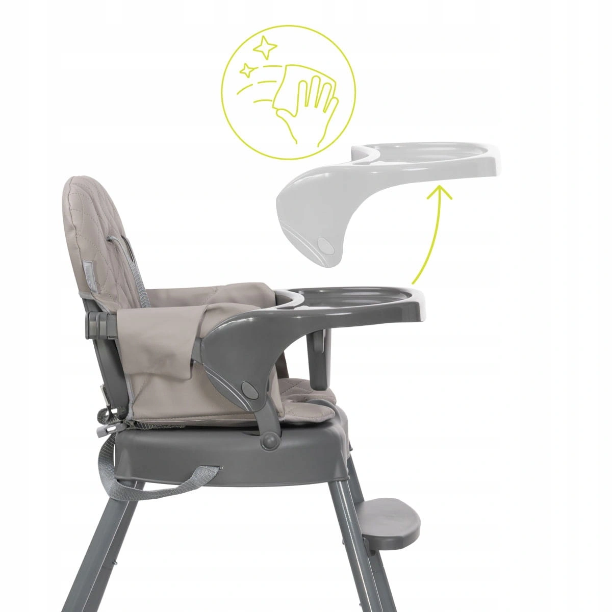 Miękkie materiały, stabilna konstrukcja oraz łatwa regulacja sprawiają, że krzesełko dopasowuje się do wieku, wzrostu i potrzeb dziecka – od pierwszych posiłków po samodzielną zabawę.