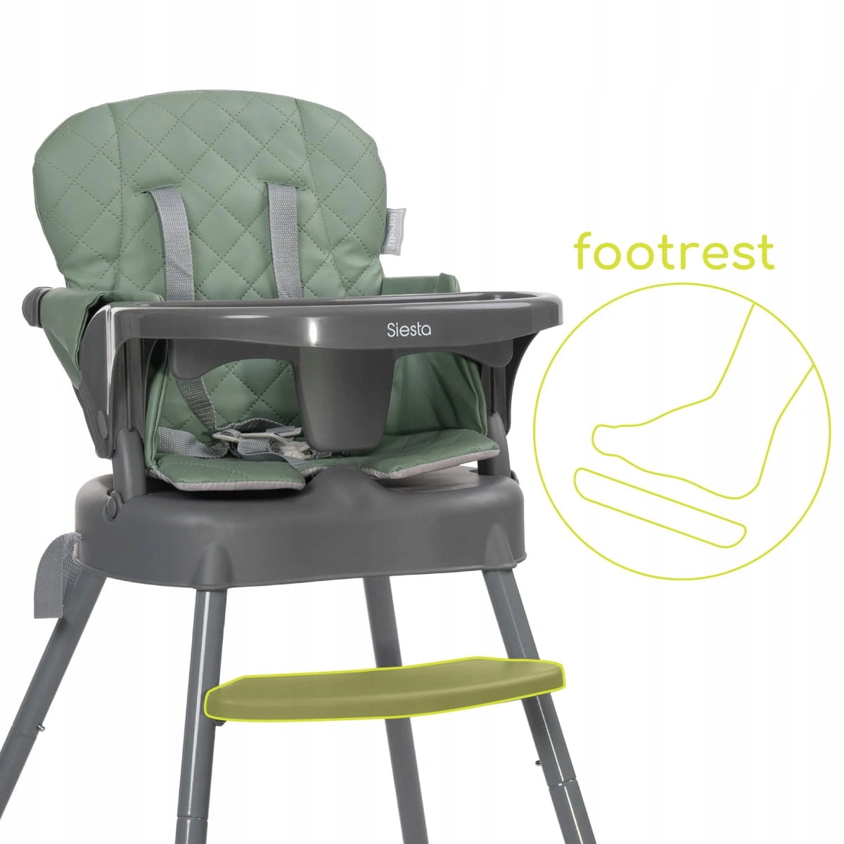 Lorelli Krzesełko do karmienia 3w1 regulowane nakładka SIESTA green