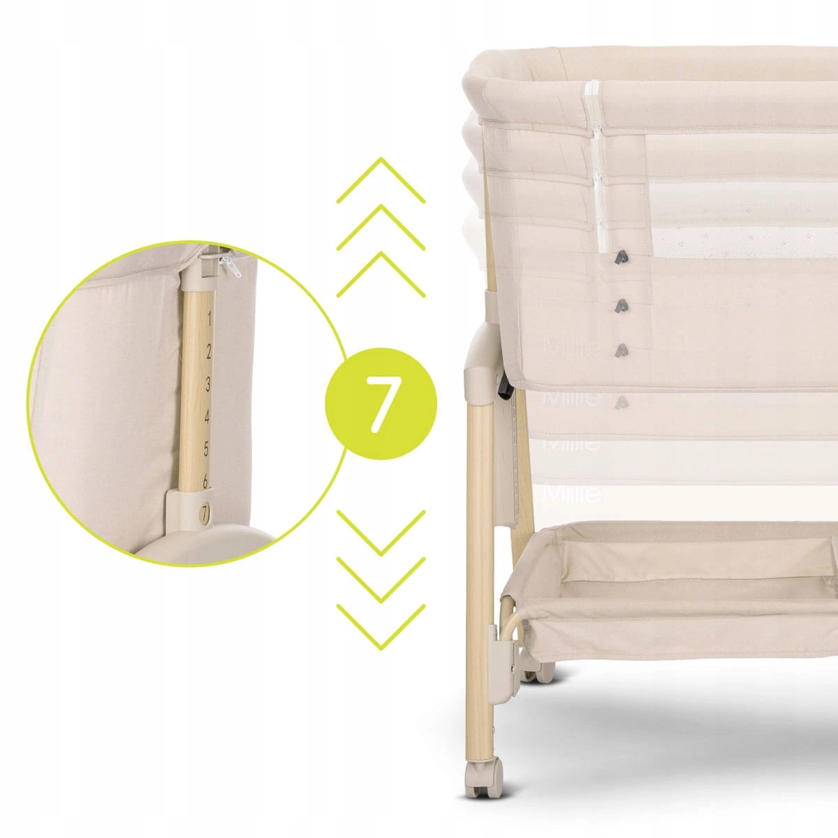 ✔️Dzięki regulowanej wysokości w siedmiu pozycjach łatwo dopasujesz Millie do każdego łóżka, zapewniając maluszkowi bezproblemowe spanie blisko rodziców.