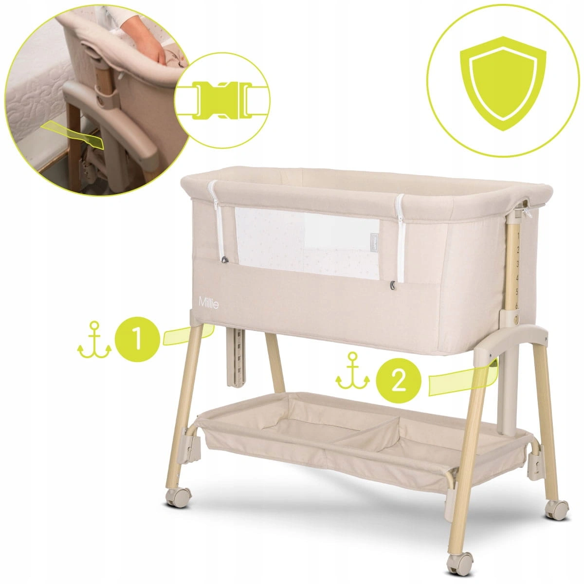 ✔️Łóżeczko Lorelli Millie wyposażone jest w specjalne paski mocujące, które umożliwiają stabilne przypięcie do ramy łóżka rodziców.