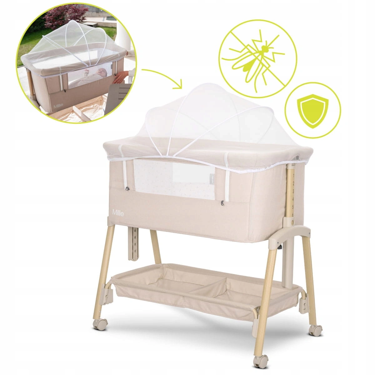 ✔️W komplecie z łóżeczkiem znajduje się praktyczna moskitiera, która skutecznie chroni dziecko przed komarami i innymi owadami.