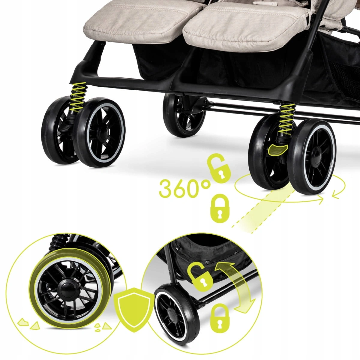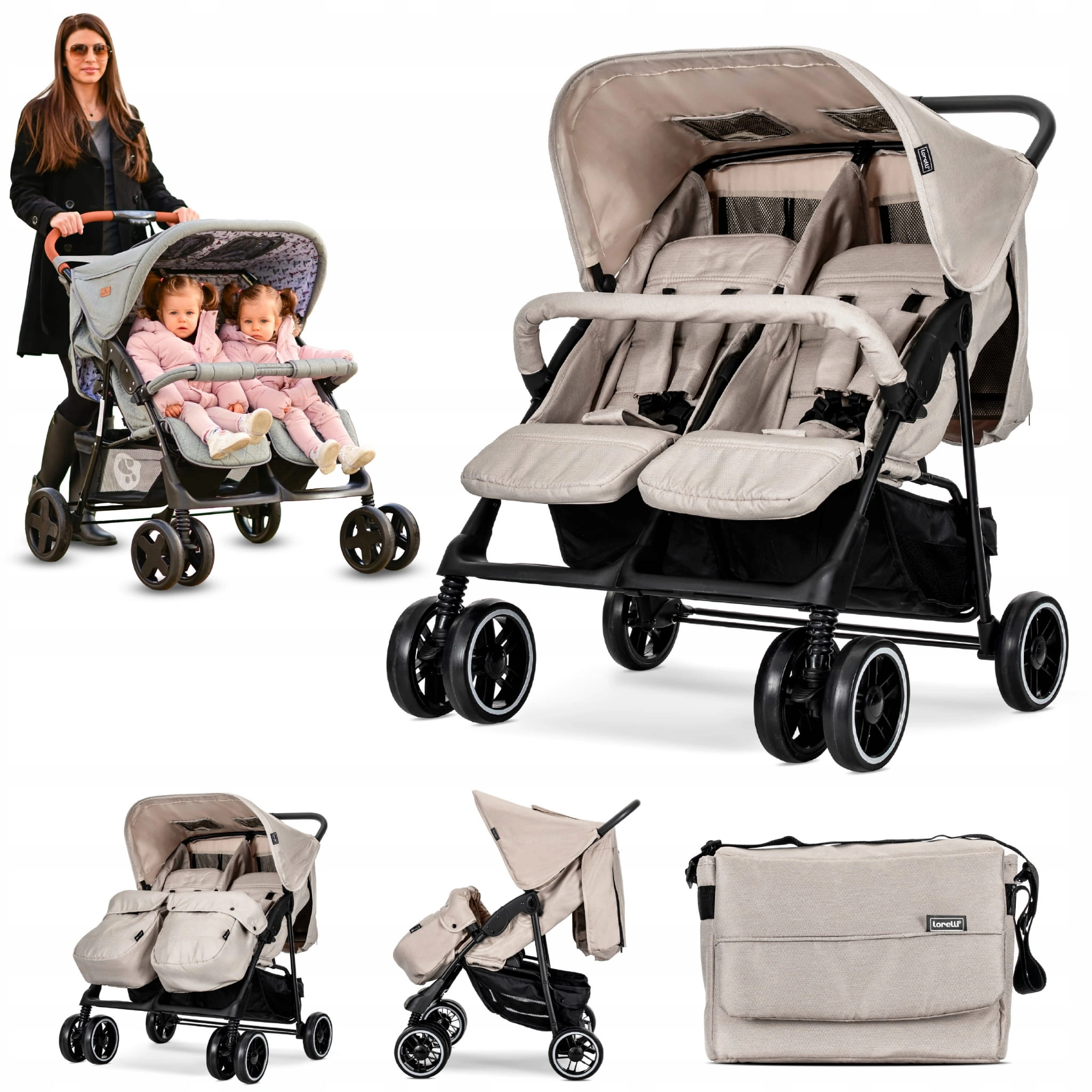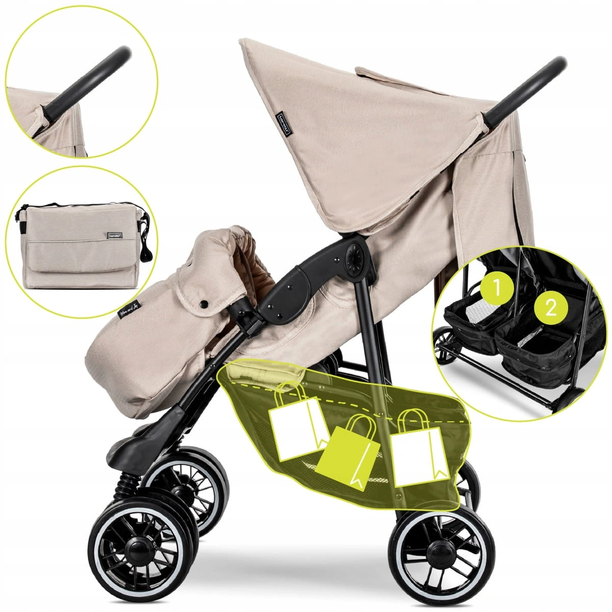 Lorelli Podwójny wózek spacerowy spacerówka dla bliźniaków Twin Beige