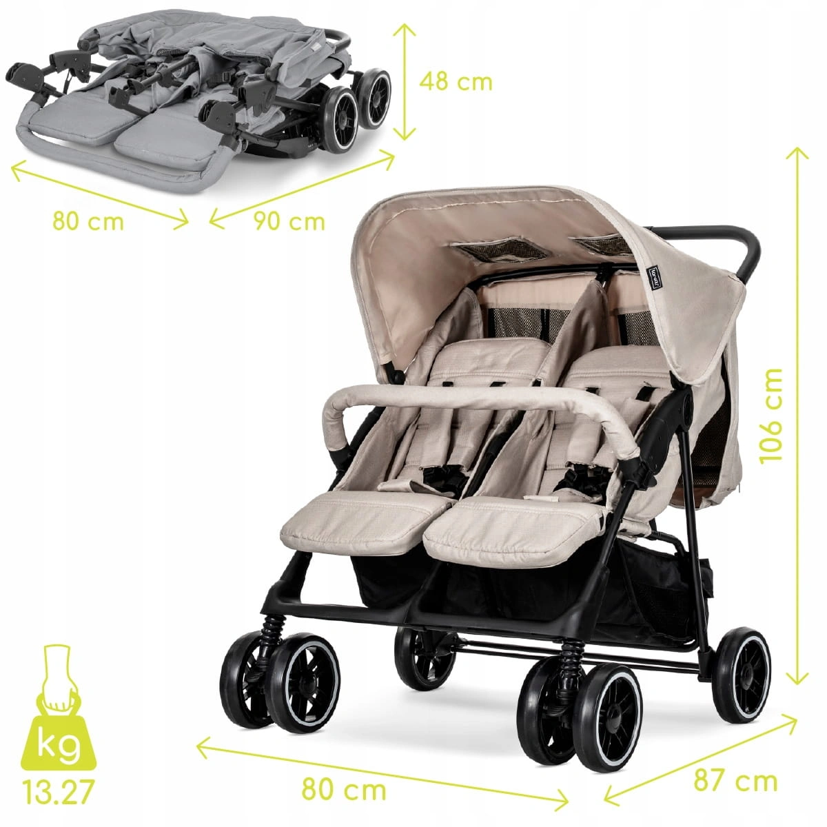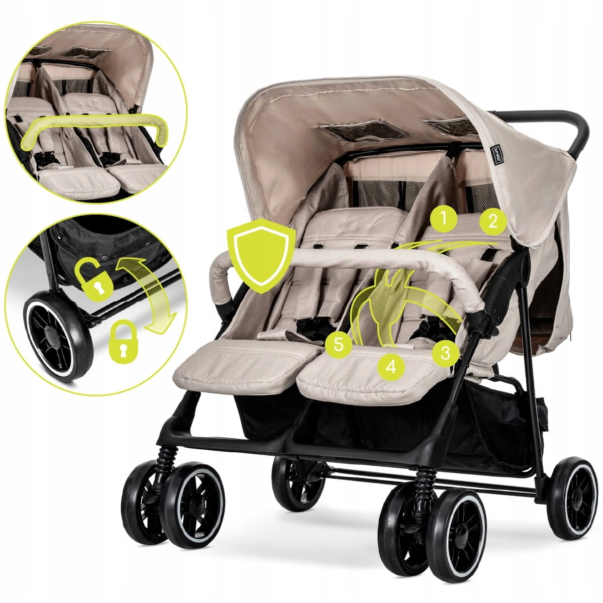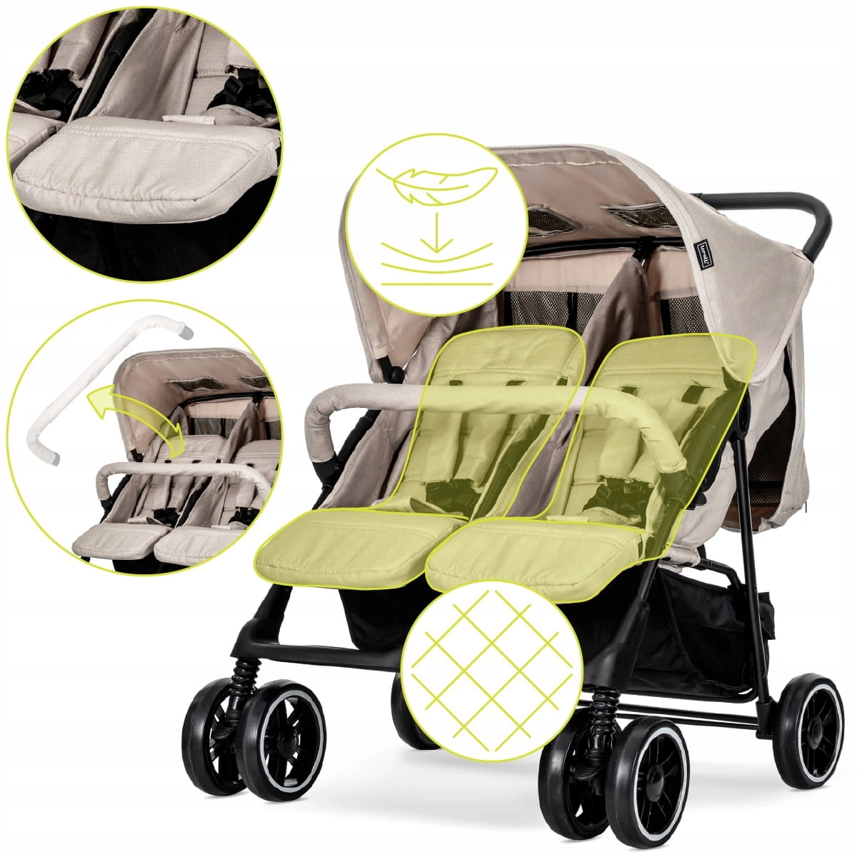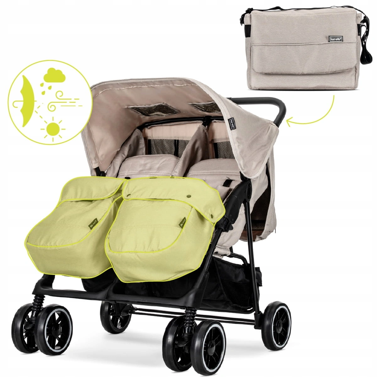 Lorelli Podwójny wózek spacerowy spacerówka dla bliźniaków Twin Beige