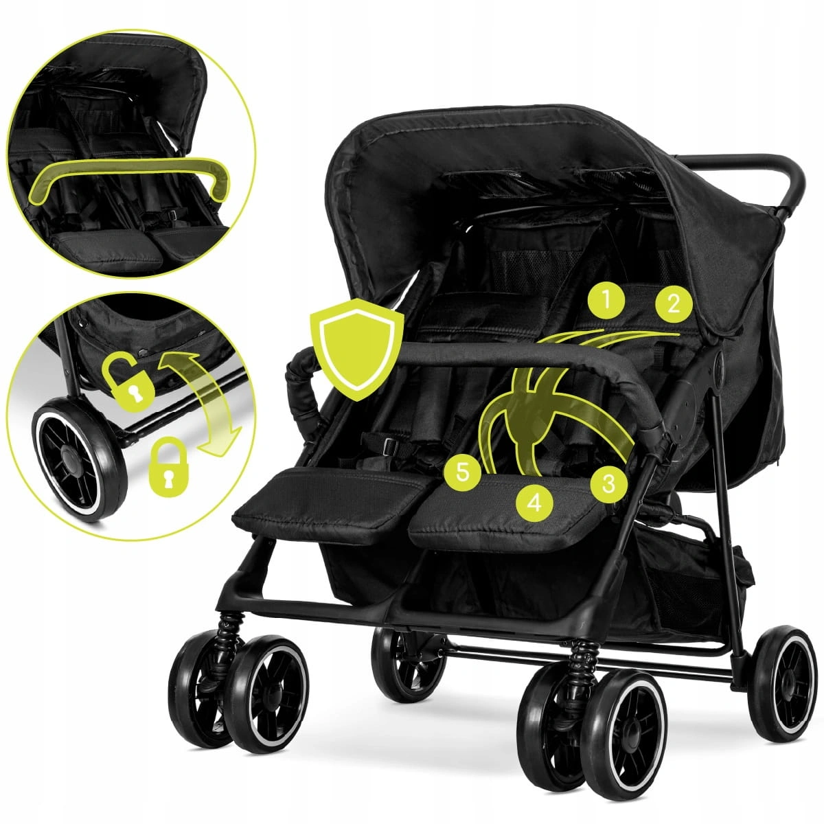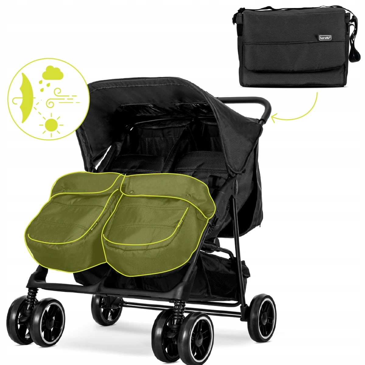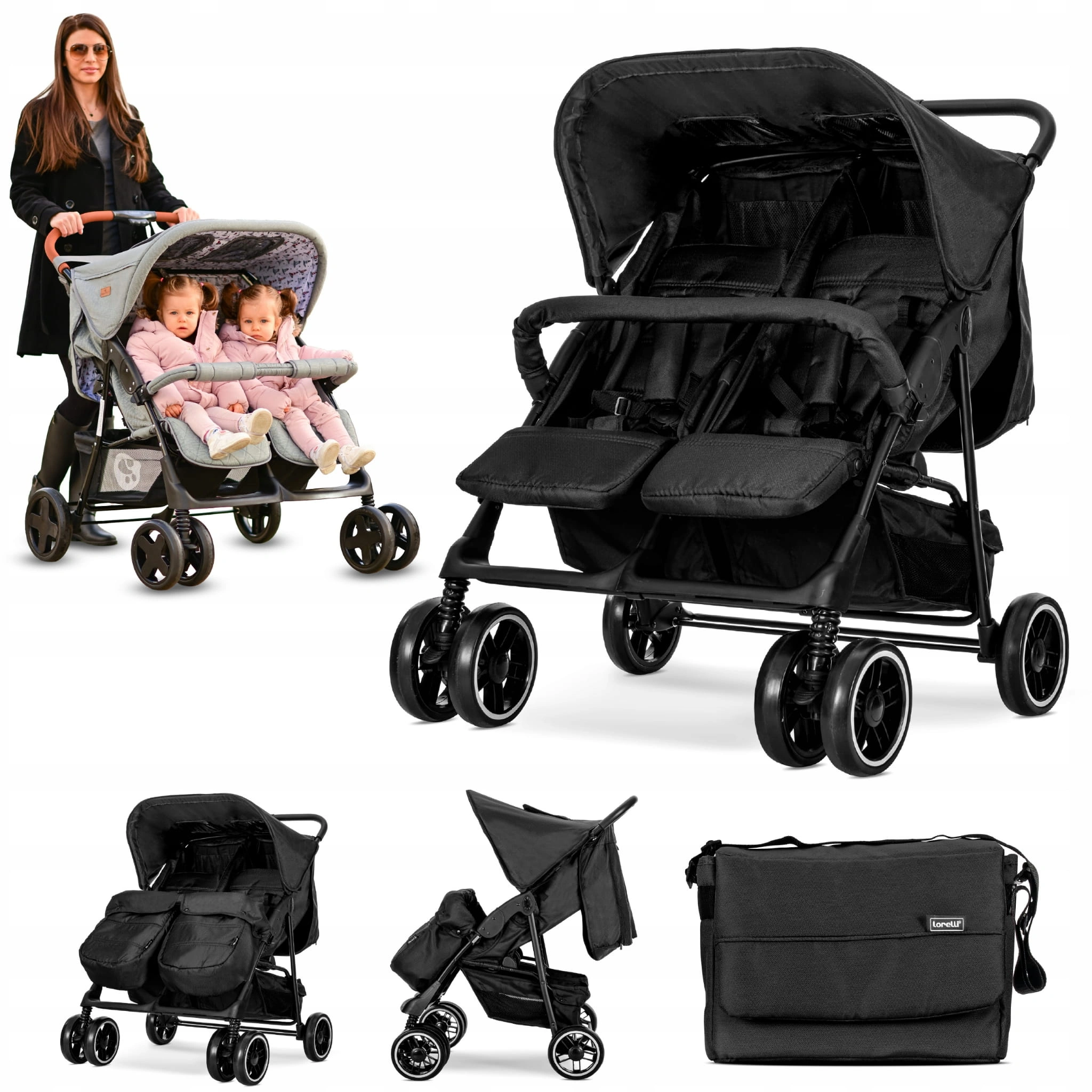 Lorelli Podwójny wózek spacerowy spacerówka dla bliźniaków Twin Black