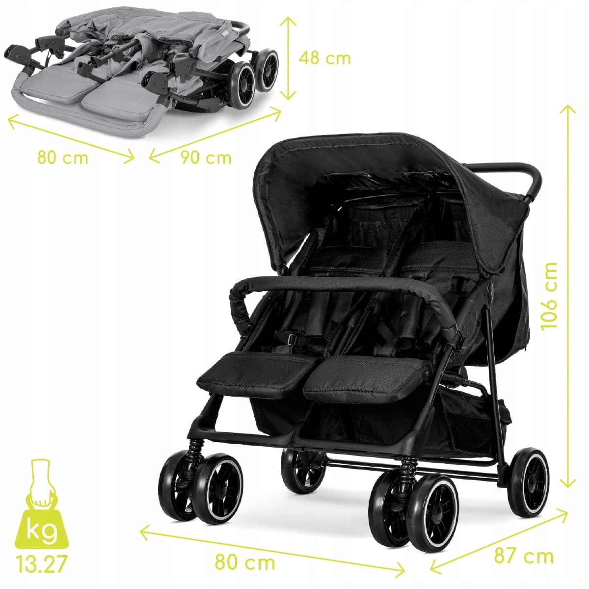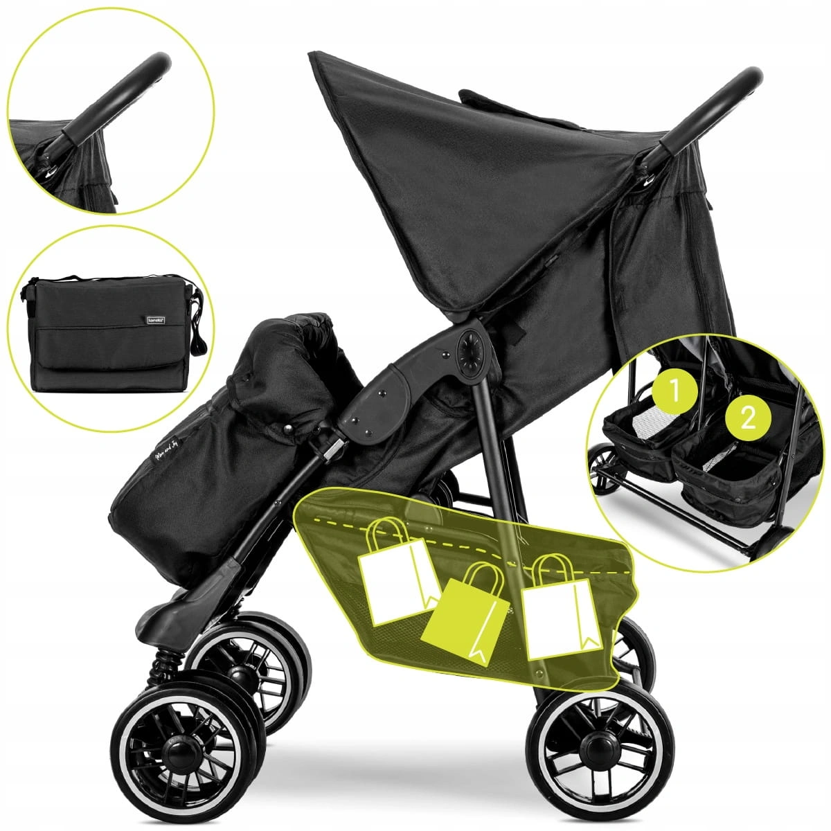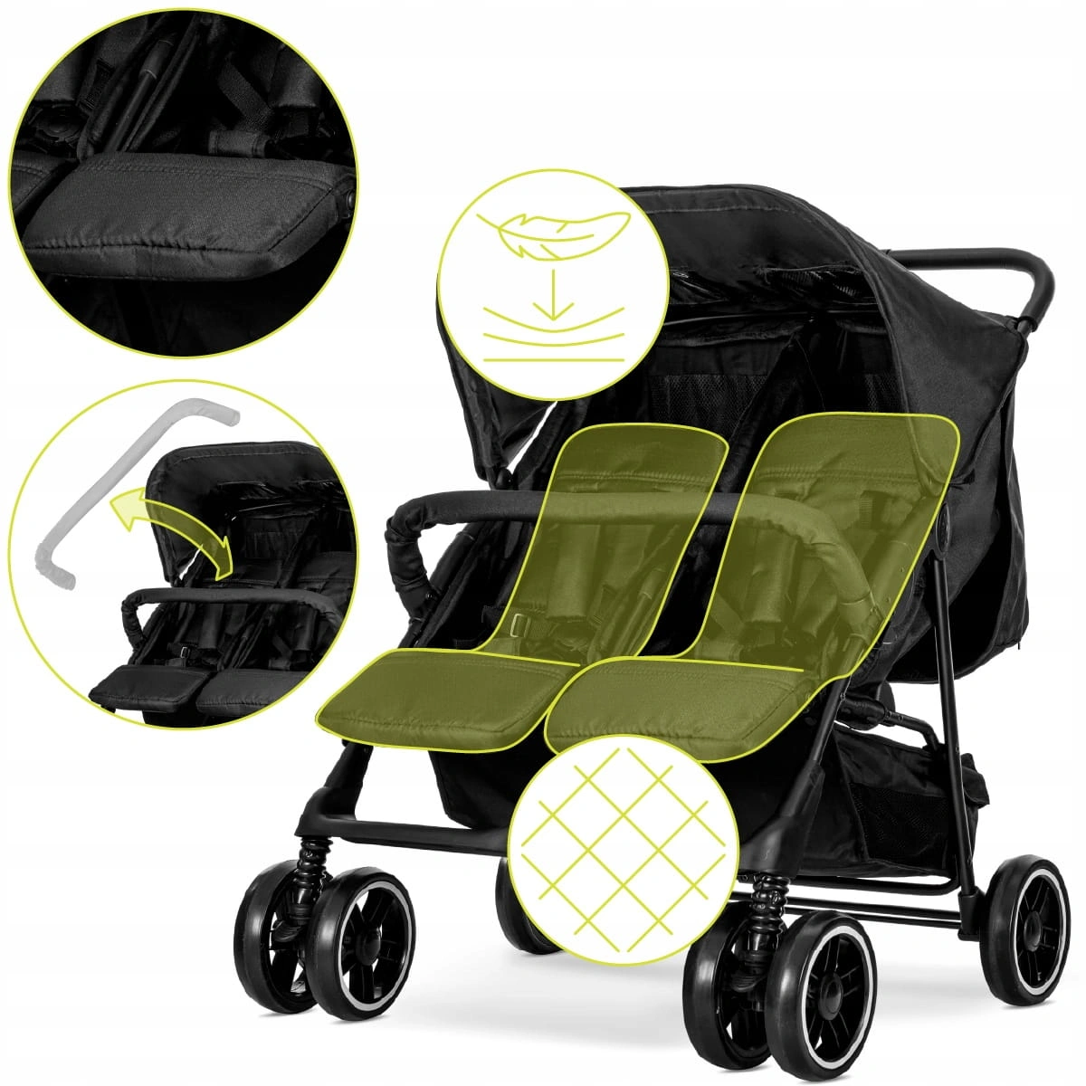 Lorelli Podwójny wózek spacerowy spacerówka dla bliźniaków Twin Black