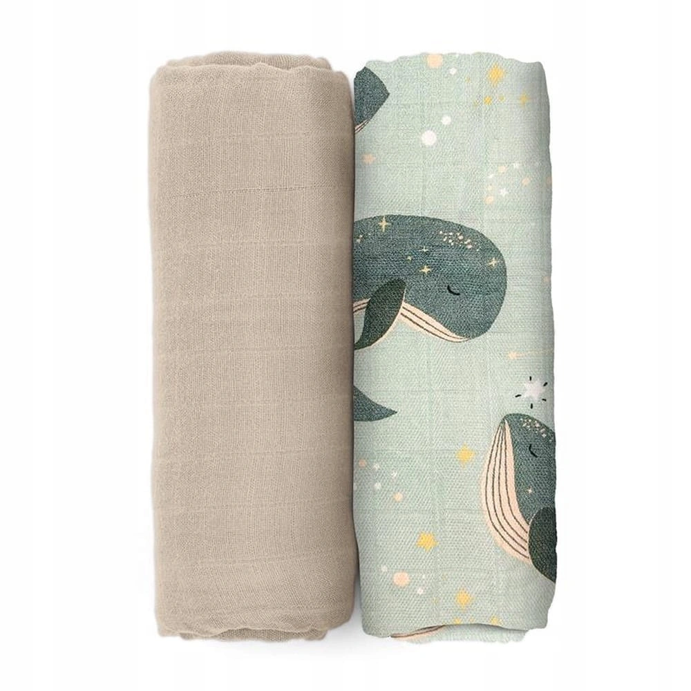PETITE&MARS Misty otulacz z muślinu bambusowego 120x120 2szt Whale Song
