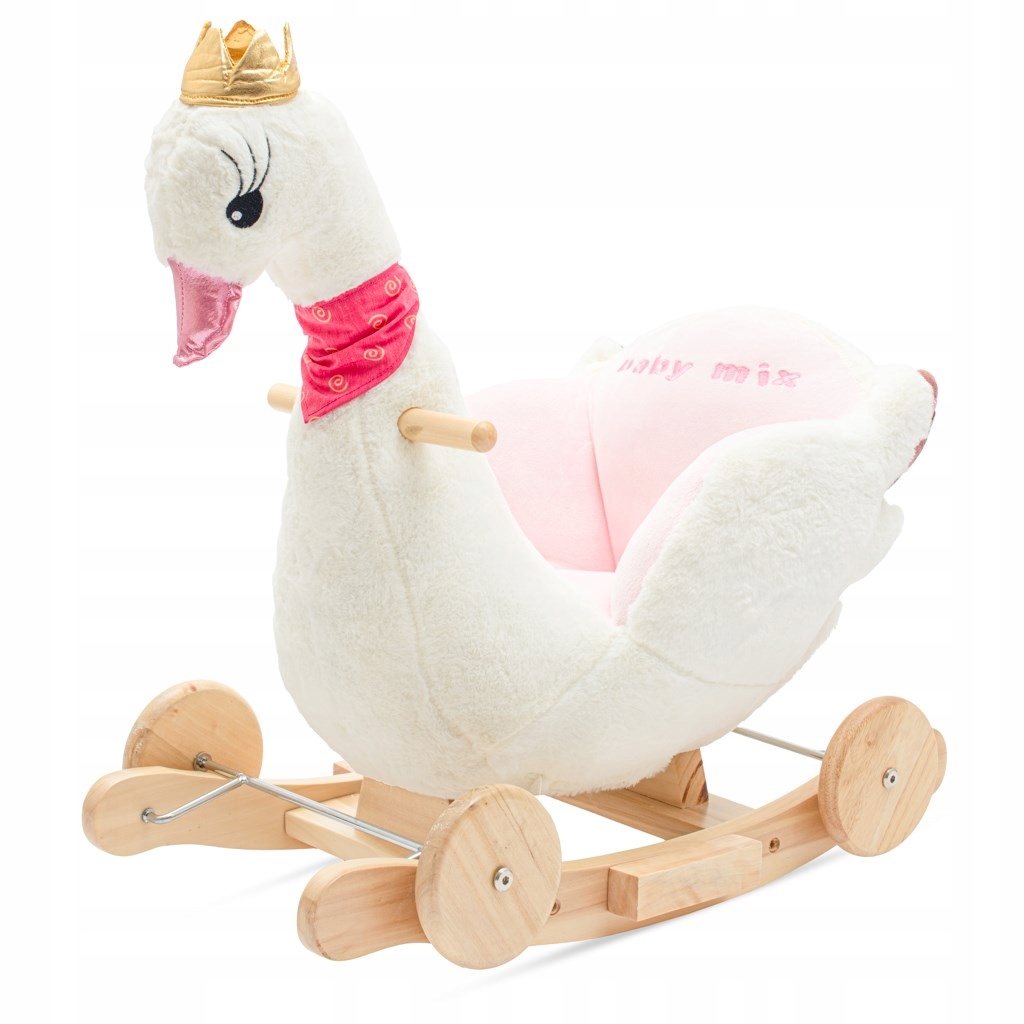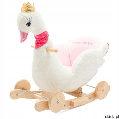 Zabawka została wykonana z miękkiego, przyjemnego w dotyku materiału, który zapewnia dziecku komfort podczas zabawy, jednocześnie dodając walorów estetycznych – doskonale komponuje się z wystrojem pokoju dziecięcego. Wbudowana melodia sprawia, że bujanie się na łabędziu to jeszcze większa frajda, stymulując rozwój zmysłu słuchu i zachęcając dziecko do aktywnej zabawy. Zabawka jest również wyposażona w kółka, co umożliwia swobodne poruszanie się po różnych powierzchniach, zapewniając przy tym bezpieczeństwo i stabilność.