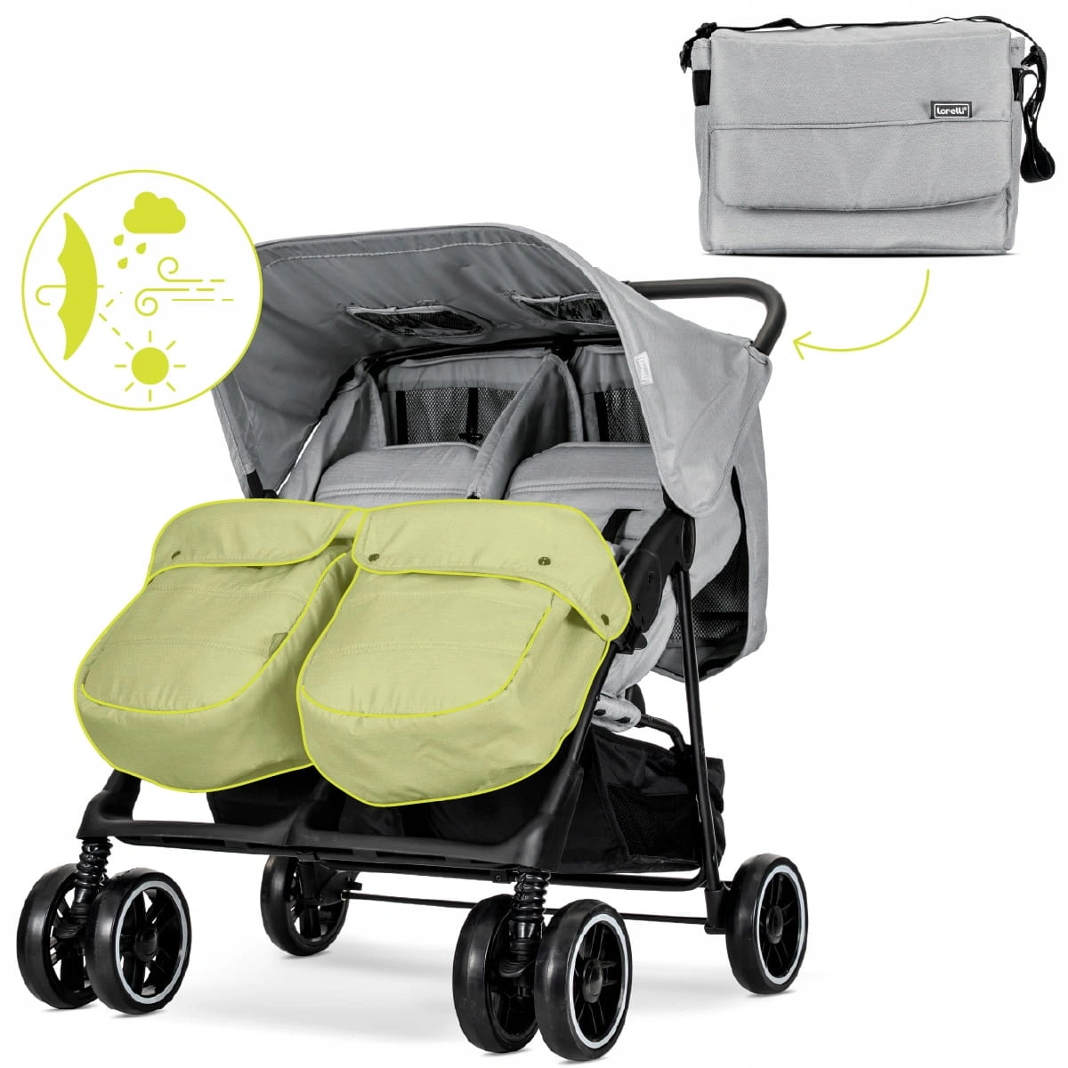 Dzięki temu wózek bliźniaczy spacerowy Lorelli Twin daje Ci realną kontrolę i wygodę każdego dnia.