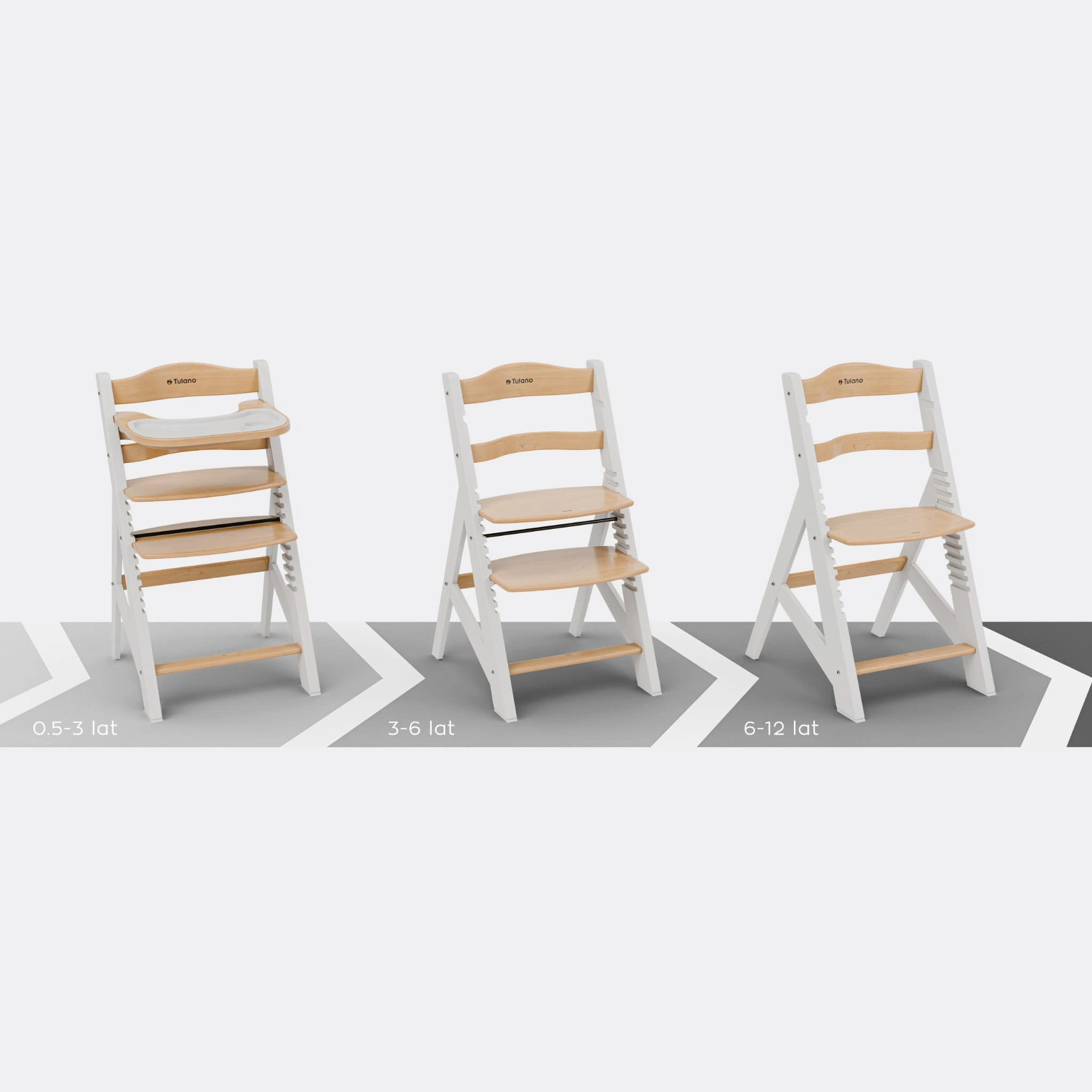 TULANO Krzesełko do karmienia 4w1 z poduszką 6 m- 12 lat MORSEL 40 White