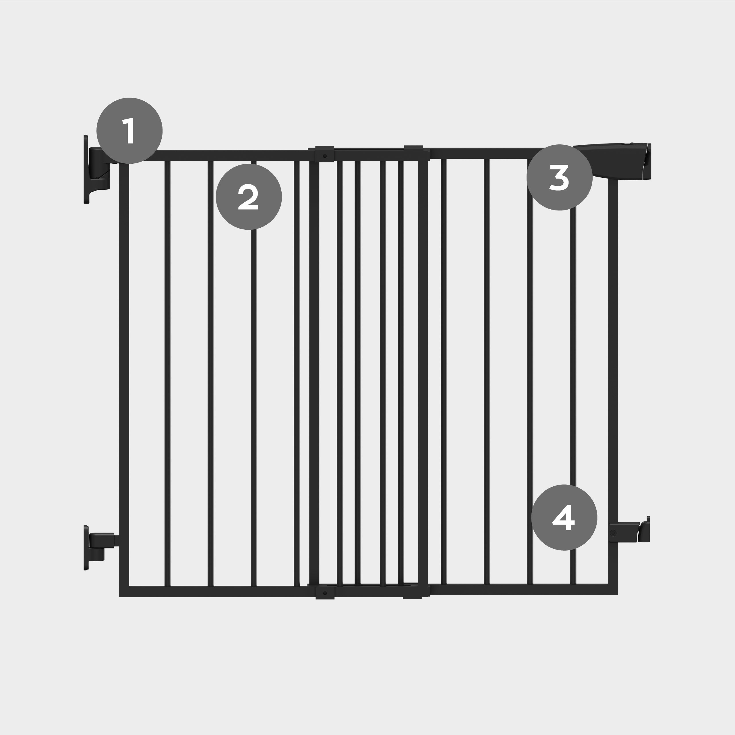- Bramkę można montować do ściany, barierki na schodach, futryny, ościeżnicy oraz boazerii.