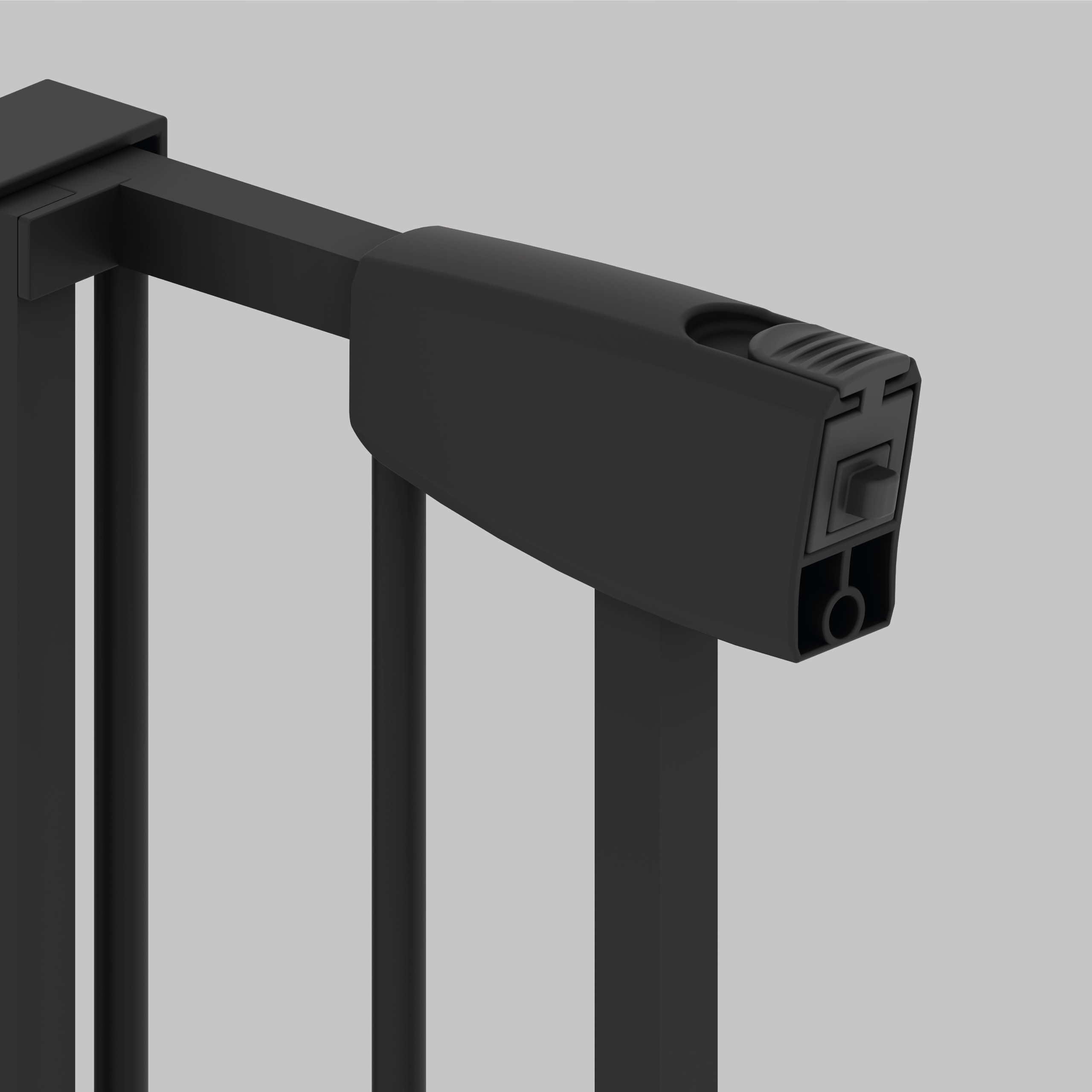- Przycisk w górnej części zamka skutecznie zabezpiecza przed otwarciem barierki przez dziecko.