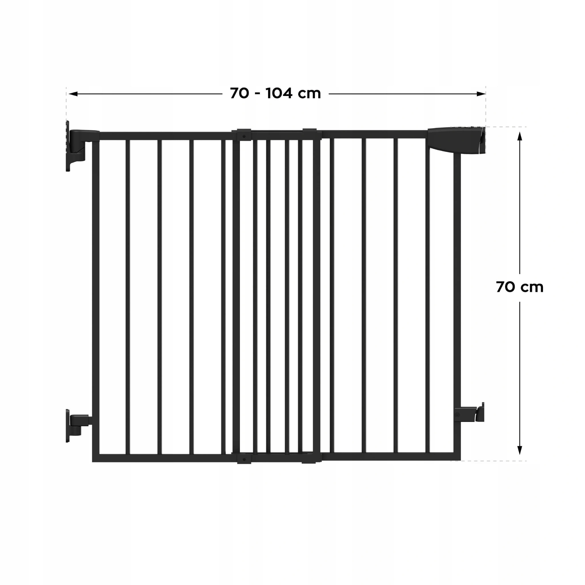 - Regulowana szerokość od 70 do 104 cm sprawia, że barierka pasuje do wielu miejsc.