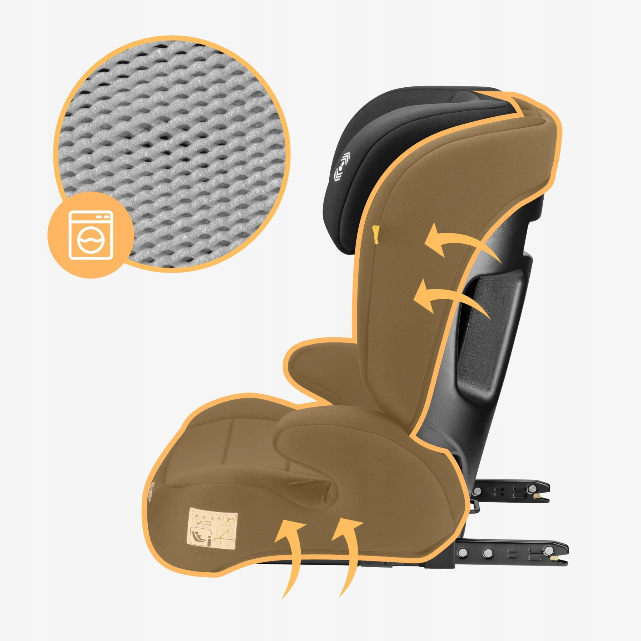 Fotelik samochodowy i-Size 100-150 cm Tulano Joy 45 ISOFIX z ochroną boczną SIP – łatwe utrzymanie czystości