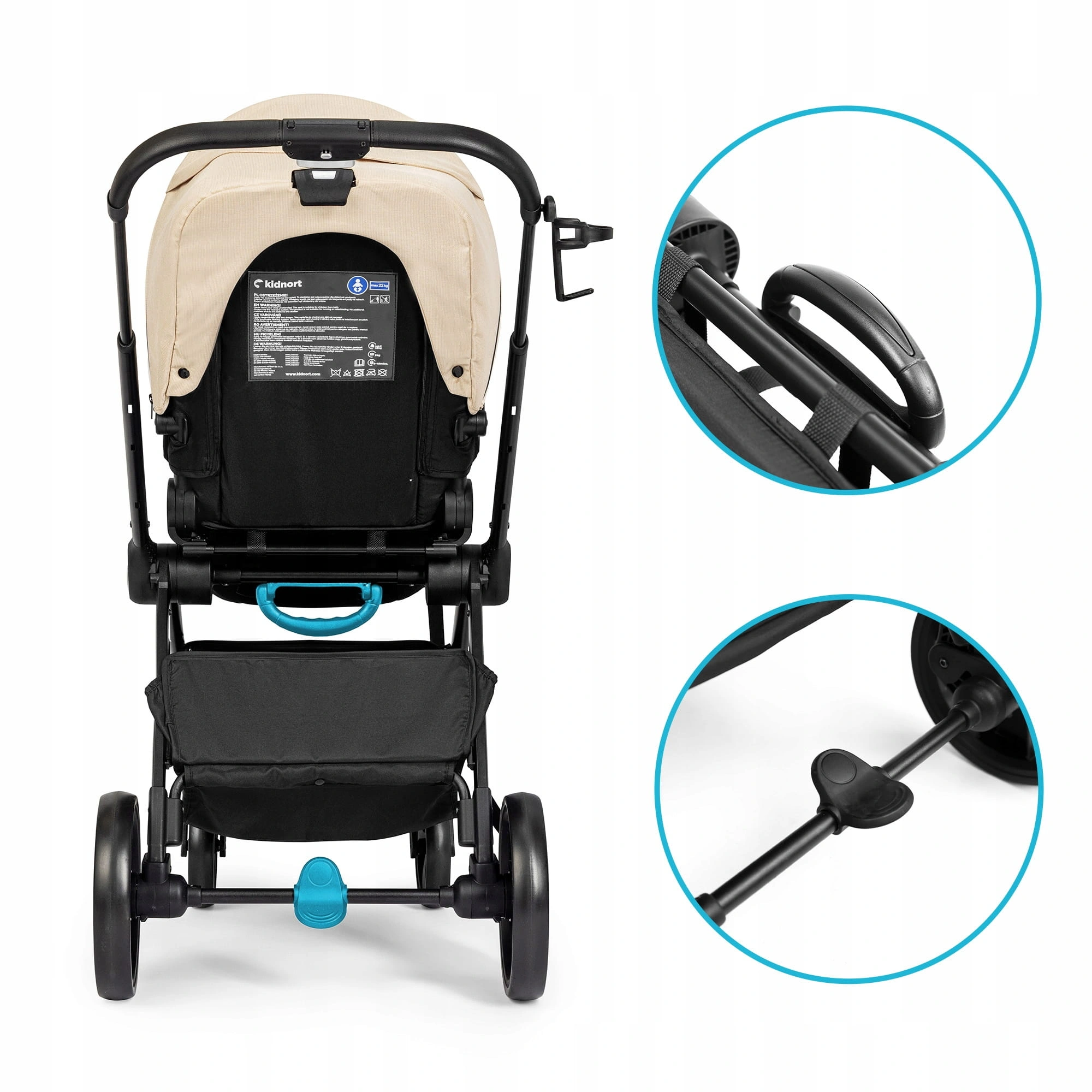 - EN-1888-1/2 – produkt spełnia wymogi bezpieczeństwa normy europejskiej, w tym maksymalne obciążenie 22 kg.