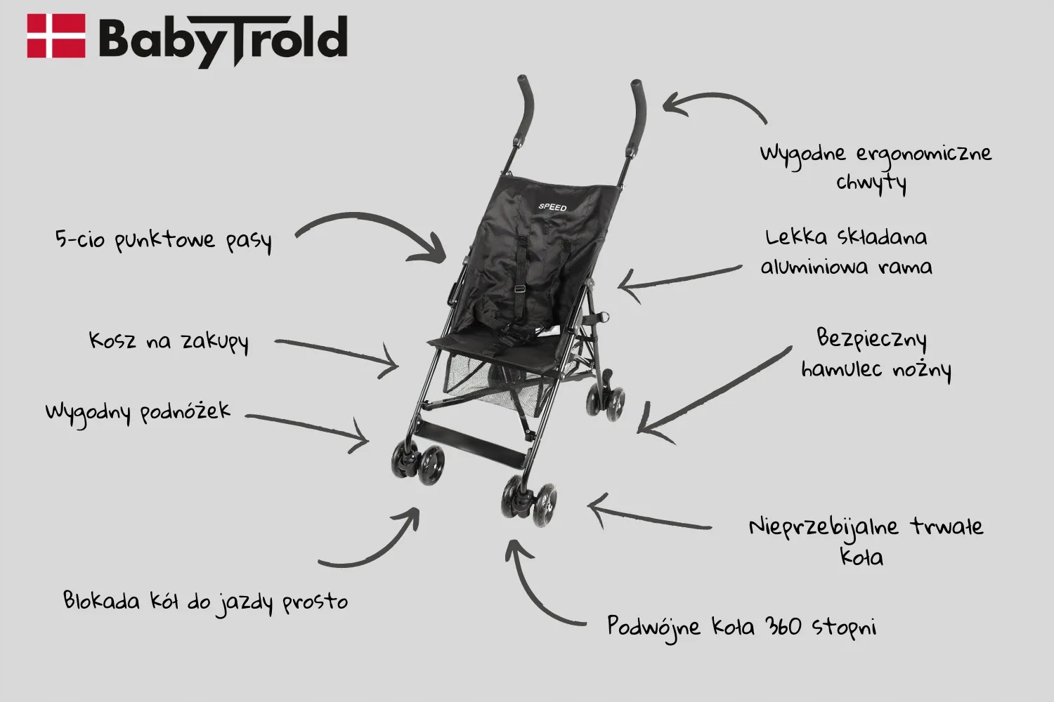 Baby Trold lekki wózek spacerowy typu parasolka Speed Black