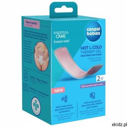 Okłady żelowe po porodzie do terapii ciepłem lub zimnem Canpol babies 2 szt to wszechstronny produkt stworzony z myślą o przywracaniu komfortu Mamy w czasie połogu. Przynosi ulgę po pęknięciu lub nacięciu krocza, po cięciu cesarskim oraz przy hemoroidach. Okłady żelowe można schładzać w lodówce lub zamrażarce lub podgrzewać w kuchence mikrofalowej. Ciepły okład działa kojąco na dyskomfort przy skurczach macicy. Zimny okład wspiera w łagodzeniu obrzęku. Dzięki elastycznej miękkiej powierzchni doskonale dopasowuje się do skóry, a perełki wewnątrz okładu pozostają w niezmienionym kształcie nawet po zamrożeniu.