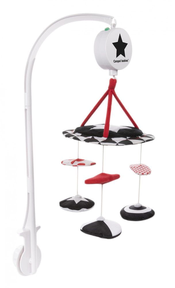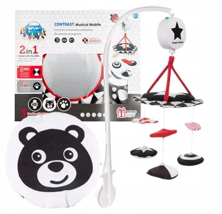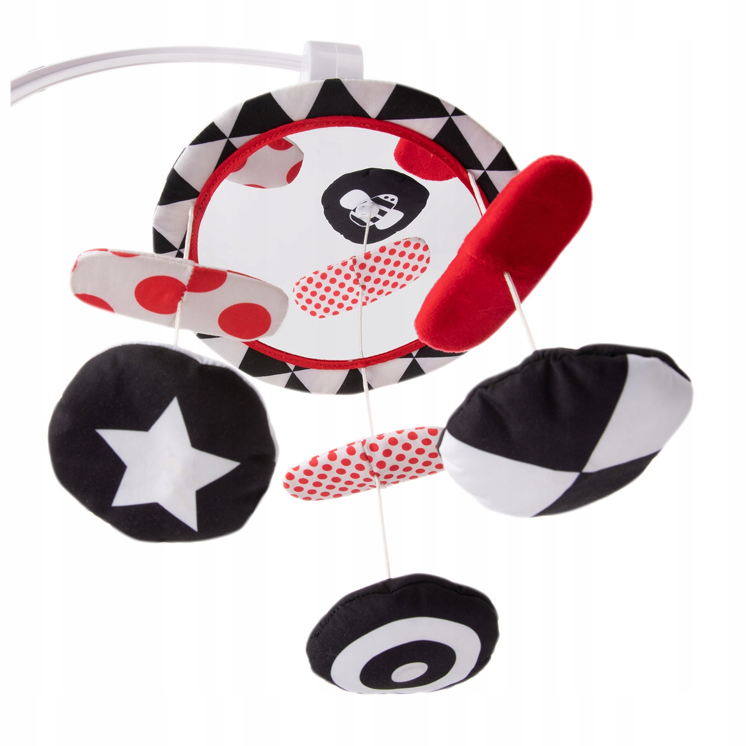 Kontrastowa karuzela z pozytywką z kolekcji Semsory Toys - Stymuluje wzrok- dzięki czerwieni i czerni -kolorom, które noworodki widzą jako pierwsze.