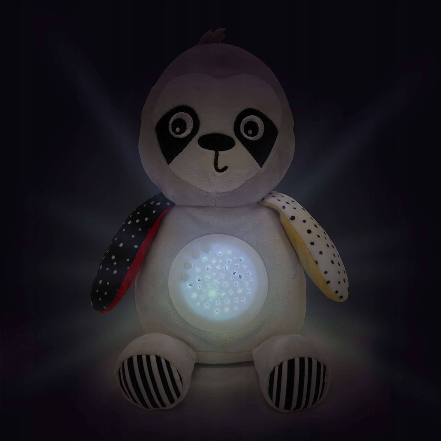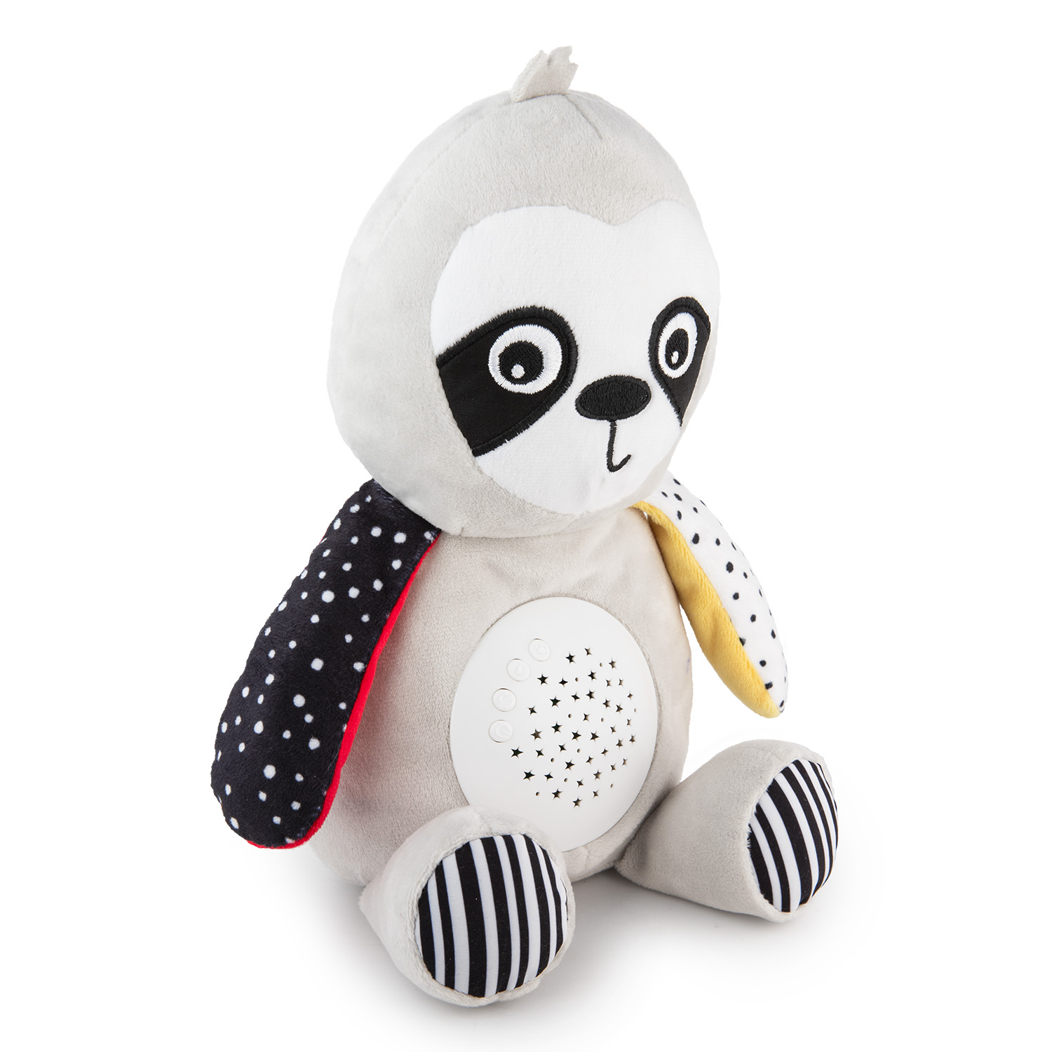Pluszowy leniwiec z pozytywką i projektorem 3w1 BabiesBoo to wyjątkowy towarzysz snu i zabaw każdego Maluszka. Miękka, sensoryczna przytulanka w kontrastowych kolorach, które noworodki widzą jako pierwsze, wspiera prawidłowy rozwój zmysłu wzroku dziecka. Mechanizm ukryty w brzuszku emituje subtelnie zmieniające się, kolorowe gwiazdki i odtwarza relaksujące melodie, które uspokoją i wyciszą Maluszka, ułatwiając mu zasypianie. Zabawka jest łatwa do utrzymania w czystości – po wyjęciu mechanizmu można uprać maskotkę ręcznie.