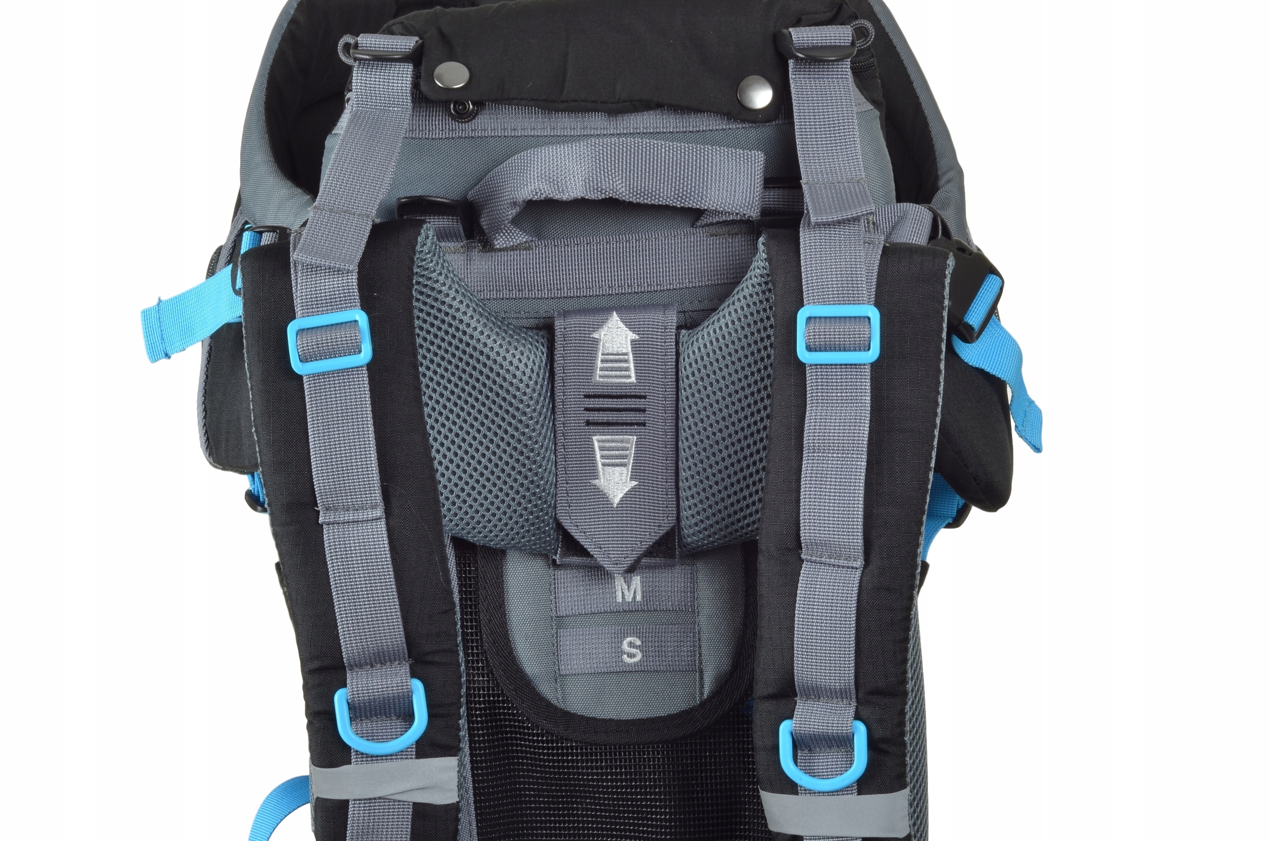 4-stopniowa (S, M, L, XL) regulacja dopasowania do wzrostu użytkownika, tylny panel z pianki dopasowującej się do kształtu pleców. Cały system nośny powleczony został siateczką polepszającą wentylację.