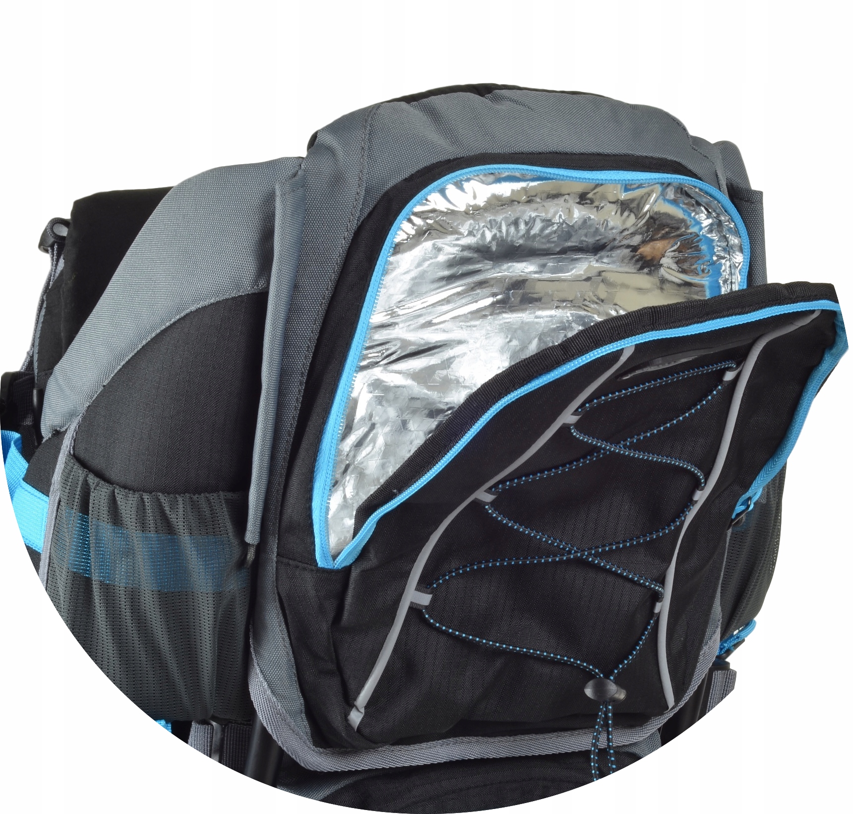 - Górna kieszeń termiczna - specjalnie zaprojektowana i wyłożona folią aluminiową kieszeń pozwoli dłużej przechowywać chłodne napoje podczas upalnych dni.