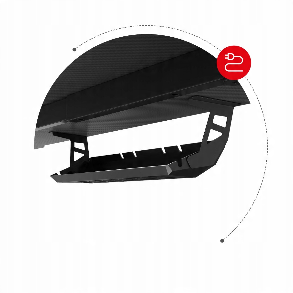 Maskownica na kable umieszczona pod blatem pomieści nawet długą listwę zasilającą, a otwory pozwolą na organizację okablowania.
