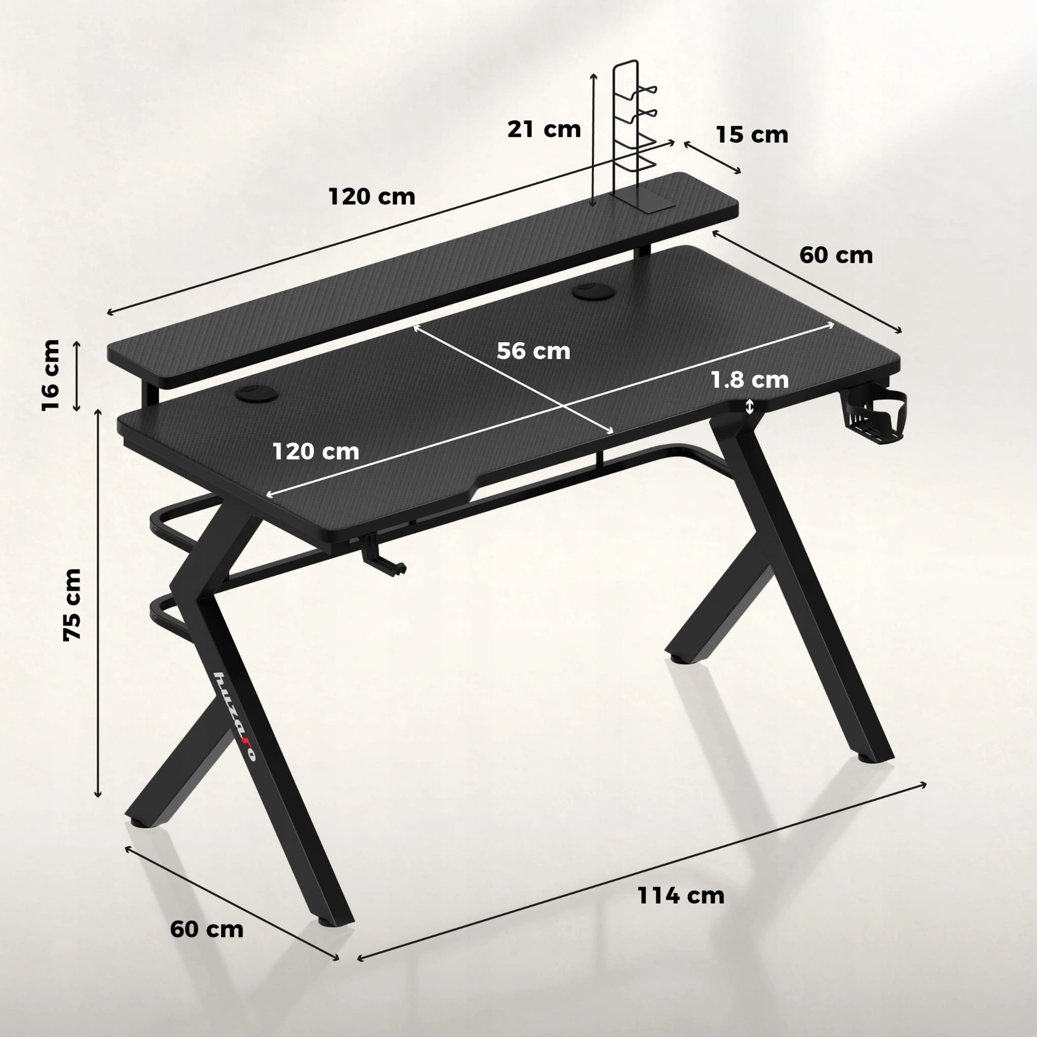 Huzaro Hero 5.0. Model: Prosty, Kształt blatu stołu: Kształt prostokątny, Materiał blatu: Włókno węglowe. Grubość blatu stołu: 2,5 cm, Wymiary blatu (SxG): 1200 x 150 mm